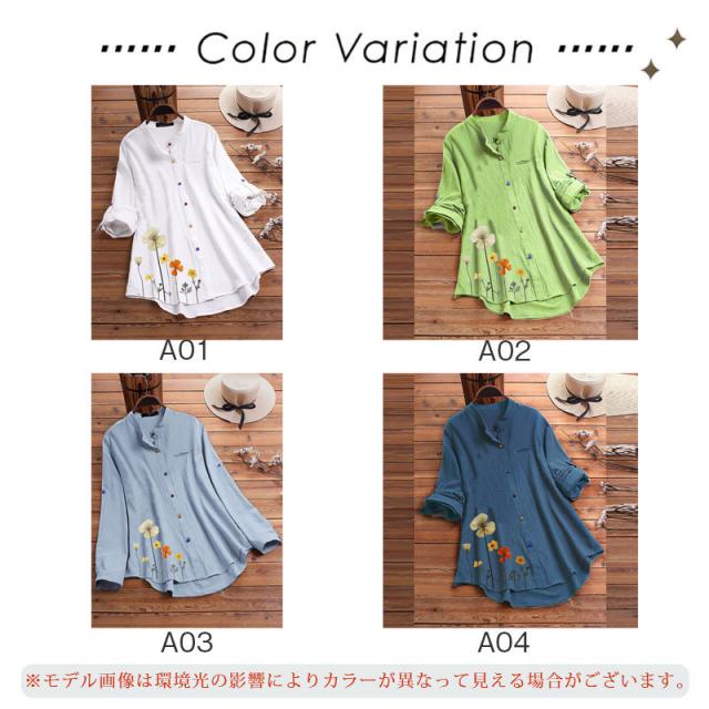 シャツ チュニックシャツ チュニック ブラウス レディース 春夏 ロングシャツ プリント 前開き 花柄 長袖 ホワイト 白 ロング丈 長袖シャツ