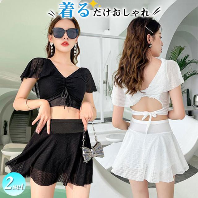水着 レディース 2点セット ワンピース 体型カバー ビキニ ママ水着 大きいサイズ 可愛い ビーチ シンプルセクシー 温泉 海水浴 フリル