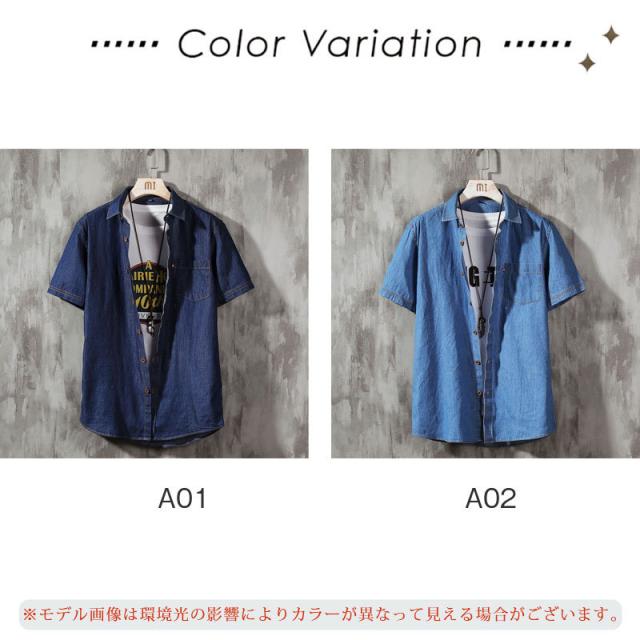 デニムシャツ メンズ 半袖シャツ デニム 開襟シャツ ウォッシュ加工 デニム 生地 トップス カジュアル アメカジ おしゃれ 大きいサイズ 無地