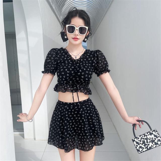 水着 高校生 中学生 レディース 2点セット プール 花柄 可愛い 体型カバー 大きいサイズ 母 おしゃれ セパレート リゾート ママ水着 温泉