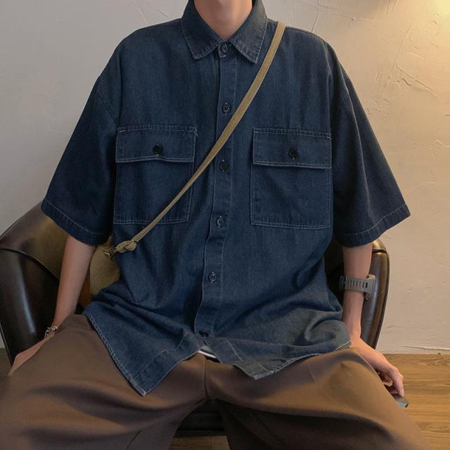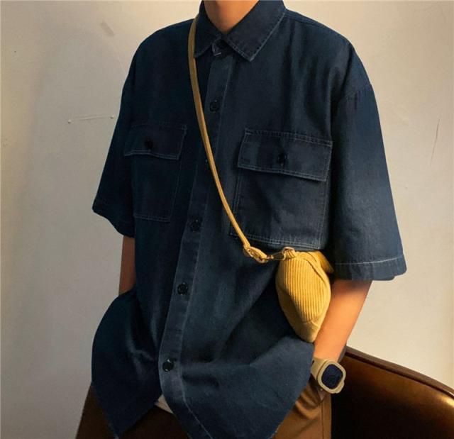 デニムシャツ メンズ デニム 半袖 トップス 開襟シャツ 半袖シャツ ワークシャツ カジュアル ゆったり ジャケット 無地 通学 通勤 大きいサイズ