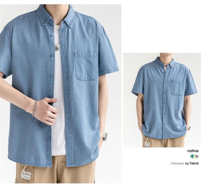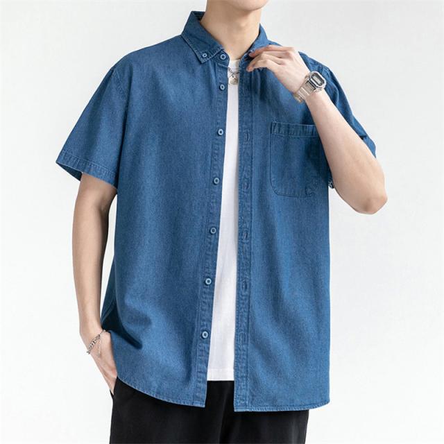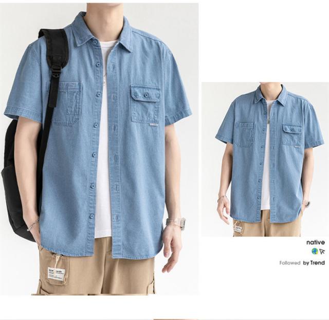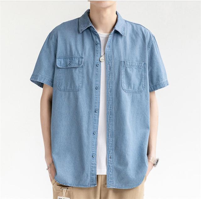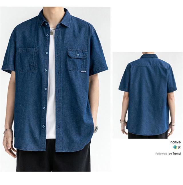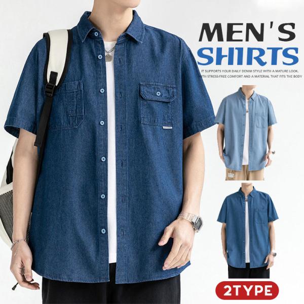 デニムシャツ メンズ デニム 半袖 トップス 開襟シャツ 半袖シャツ ワークシャツ カジュアル ゆったり ジャケット 無地 通学 通勤 大きいサイズ