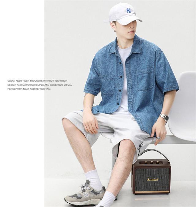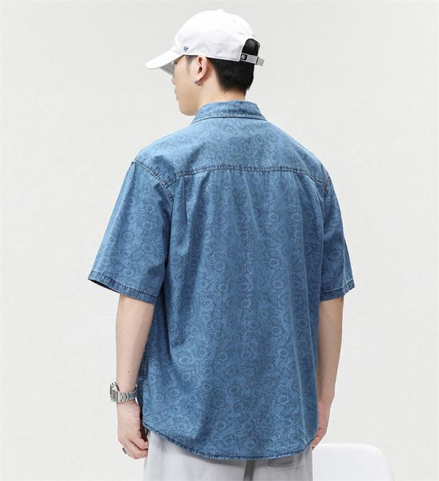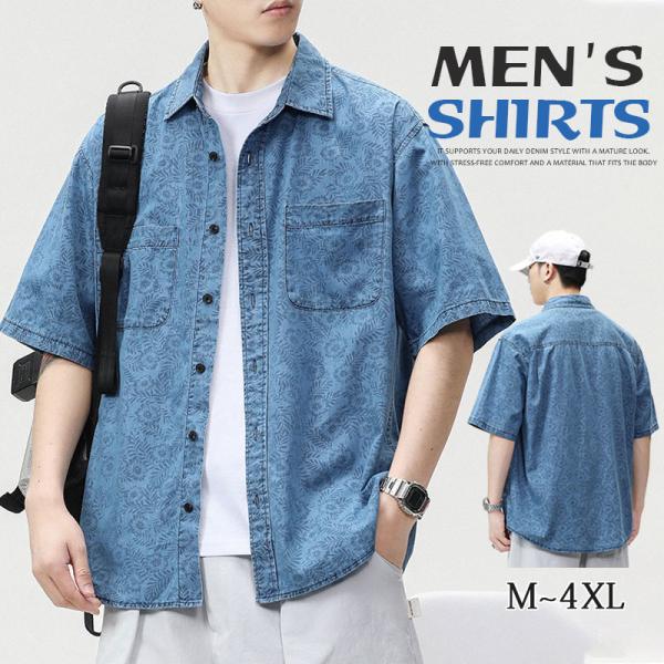 デニムシャツ メンズ デニム 半袖 トップス 開襟シャツ 半袖シャツ アロハシャツ カジュアル ゆったり ジャケット 無地 通学 通勤 大きいサイズ