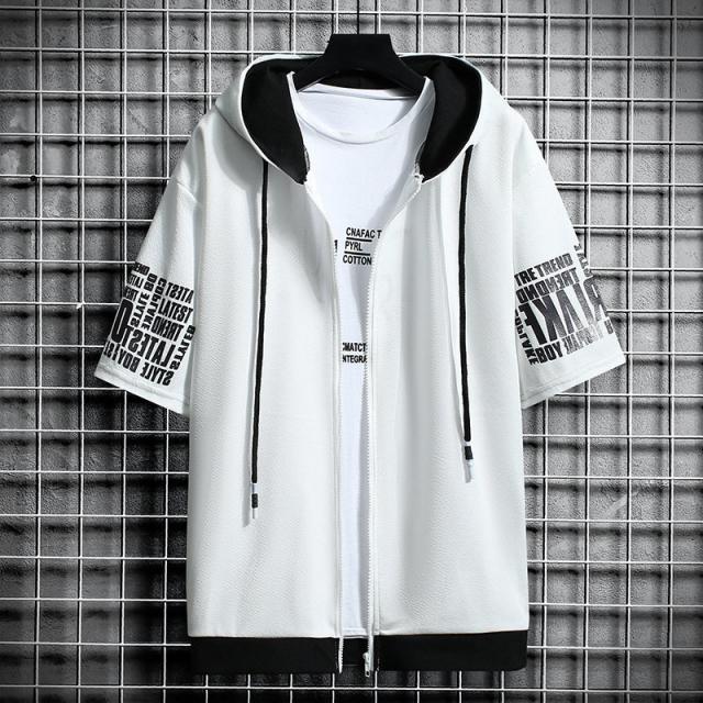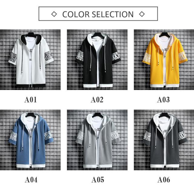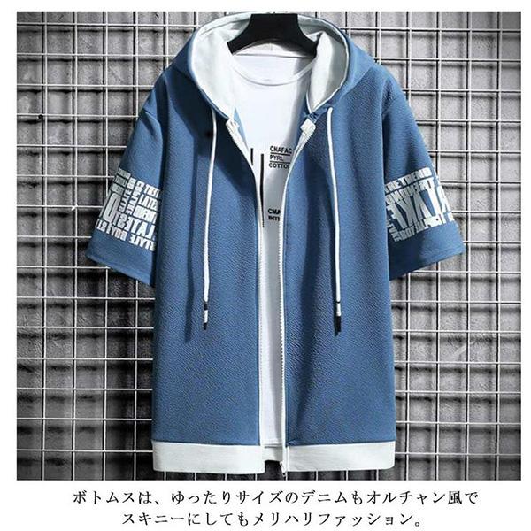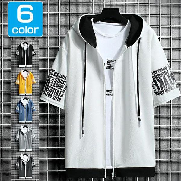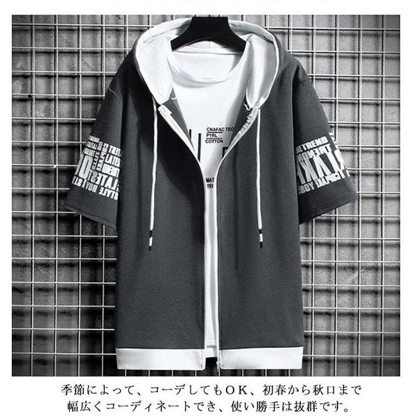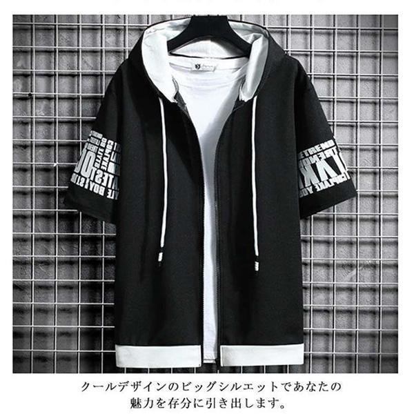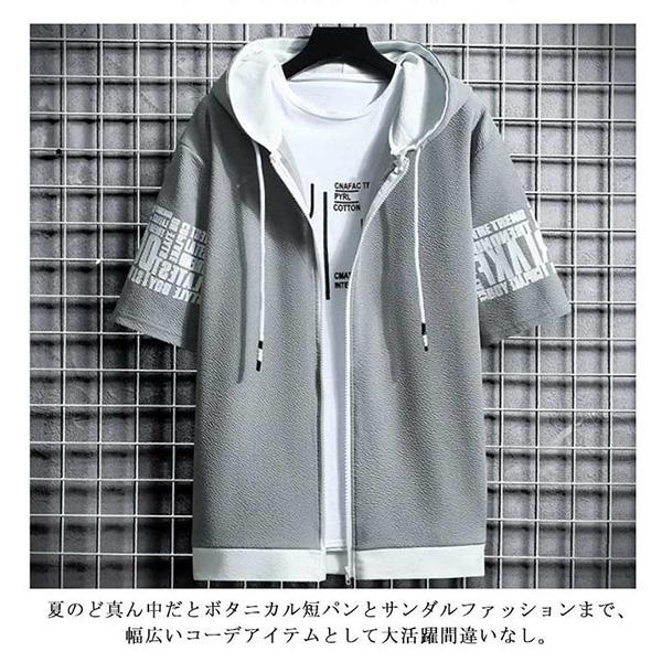 【2点ご購入で500円OFF】半袖パーカー メンズ 半袖 切り替え フード付き ジップアップ 薄手 トップス おしゃれ 肌触り カットソー 冷感 ゆったり 重ね着