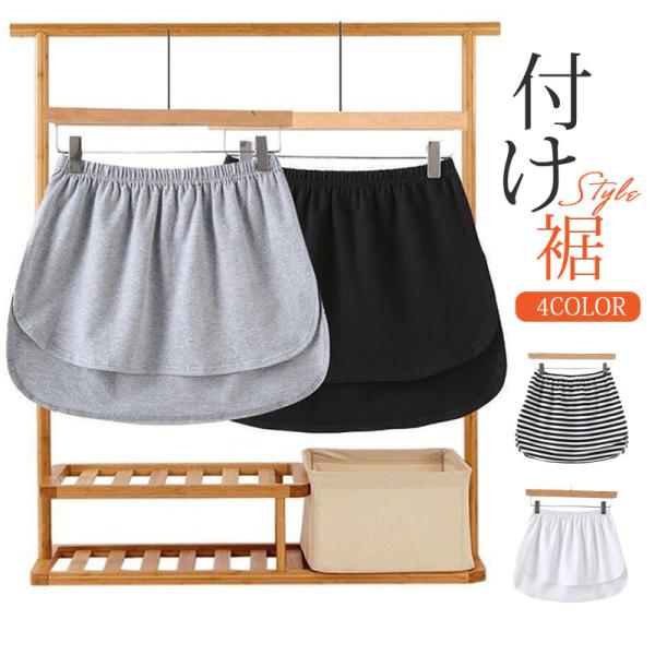 付け裾 トップス レディース レイヤード フェイク 腹巻き つけ裾 体型カバー ウエストゴム インナー ストライプ ブラック カジュアル コーデ