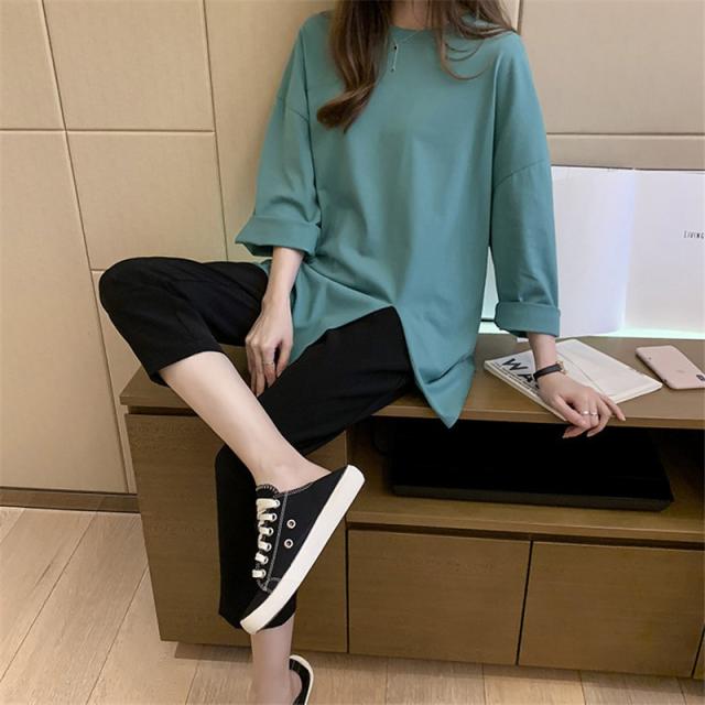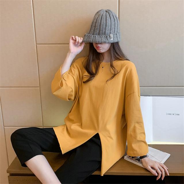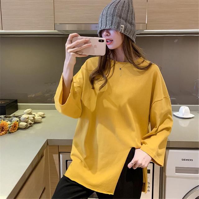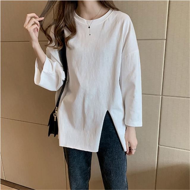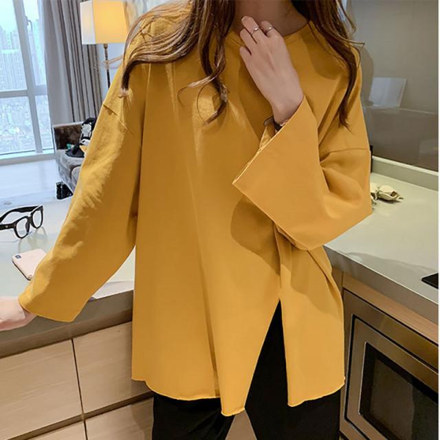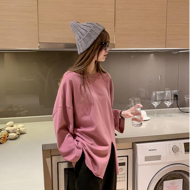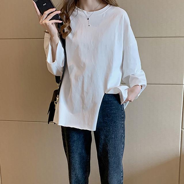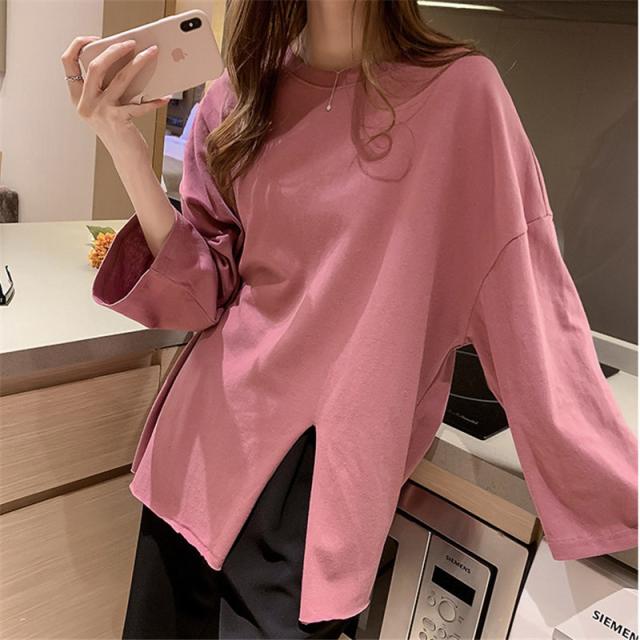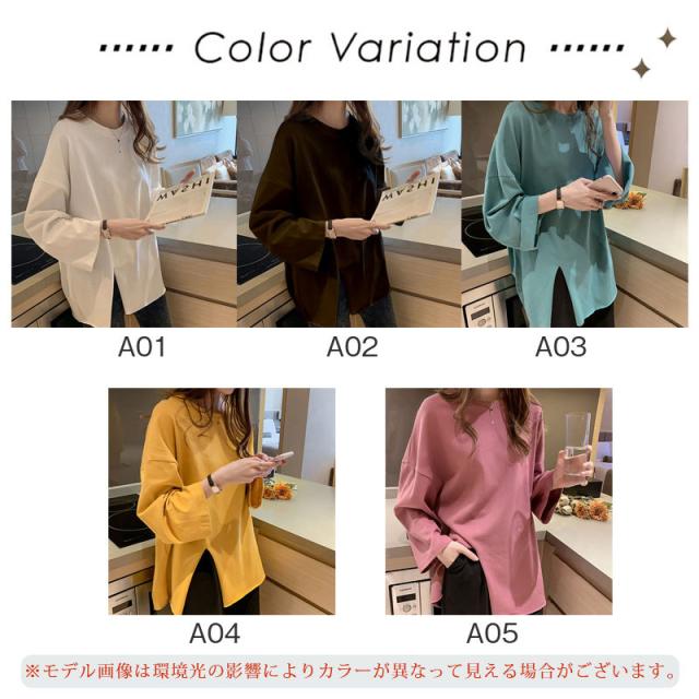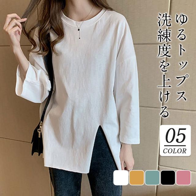 『2個ご購入で200円OFF』カットソー レディース ロンT トップス Tシャツ サイドスリット 長袖シャツ 重ね着 レイヤード 長袖 無地 カジュアル ゆったり