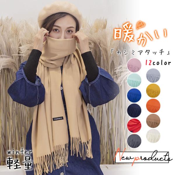 \【春コーデ】/マフラー 大判ストール ロングマフラー 薄手 無地 カシミアタッチ レディース 防寒 暖かい フリンジ 大判 ポレロ ストール