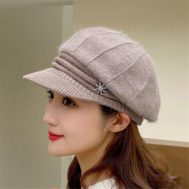 キャスケット ニット帽 レディース つば付き 秋冬 室内帽子 可愛い 外出用 自転車 あったか 深め 通院 防寒 冷え防止 暖かい 防寒対策 送料無料