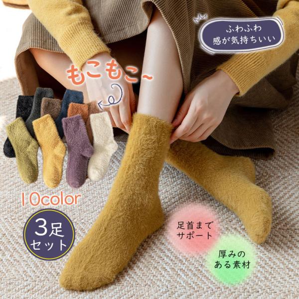 3足セット靴下 もこもこ ふわふわ ルームソックス レディース 暖かい お部屋用 冷え性対策 おしゃれ アウトドア 保温 防寒 クリスマス 送料無料