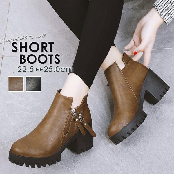 ショートブーツ レディース ブーツ ぺたんこ 厚底 ブーティ 太めヒール 秋冬 送料無料 美脚 歩きやすい 疲れない 通勤 きれいめ おしゃれ