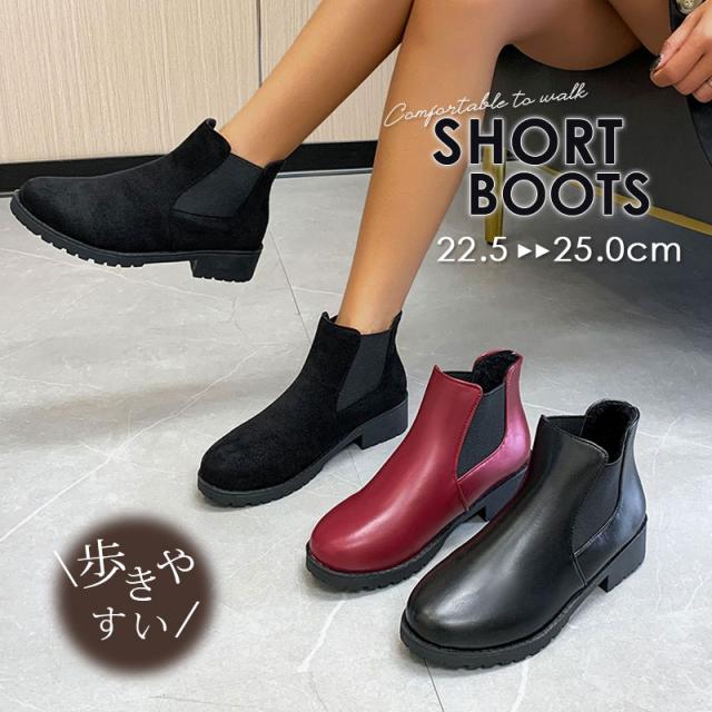 ショートブーツ レディース ブーツ サイドゴア ブーティ ローヒール 秋冬 送料無料 美脚 歩きやすい 疲れない 通勤 きれいめ おしゃれ