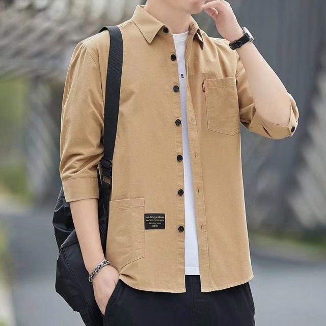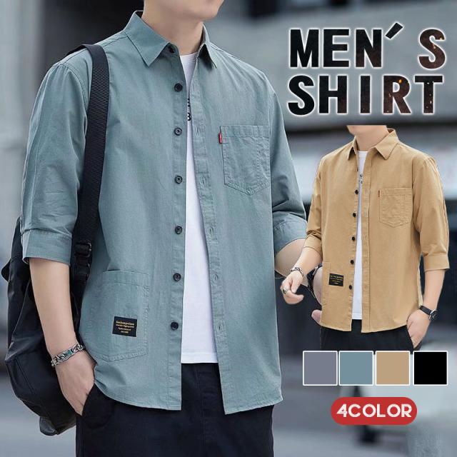 【2点ご購入で500円OFF】七分袖シャツ シャツ メンズ 半袖シャツ 涼しい カジュアル シンプル 無地 ビジネス ミリタリーシャツ 羽織 開襟シャツ おしゃれ 夏服