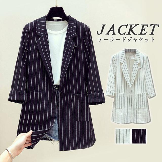 テーラードジャケット レディース ジャケット ボーダー柄 スーツ ストライプジャケット 無地 ブラック ベージュ 夏アウター 入園 入学 卒業式