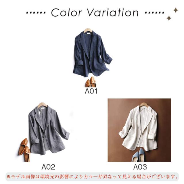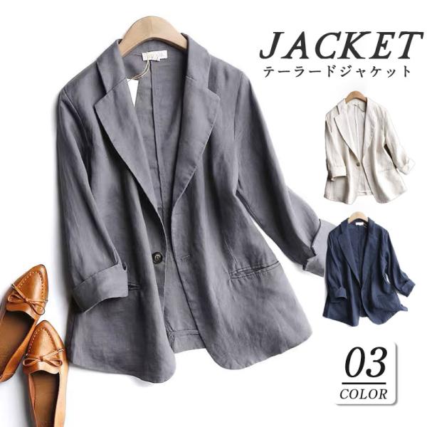テーラードジャケット レディース ジャケット 七分袖 リネン風 サマージャケット 通勤 カジュアル 涼しい 羽織り 春秋 アウター オフィス スーツ