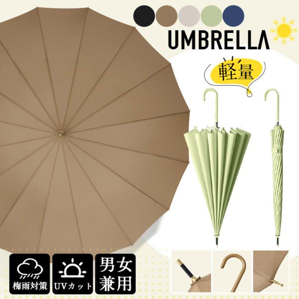 雨傘 長傘 レディース メンズ 16本骨 通勤 通学 軽量 長柄 日傘 おしゃれ 梅雨 頑丈 大きめ 高温対策 耐風傘 UVカット 撥水 送料無料