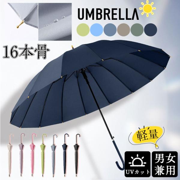 雨傘 長傘 レディース メンズ 16本骨 通勤 通学 軽量 長柄 日傘 おしゃれ 梅雨 頑丈 大きめ 高温対策 耐風傘 UVカット 撥水 送料無料