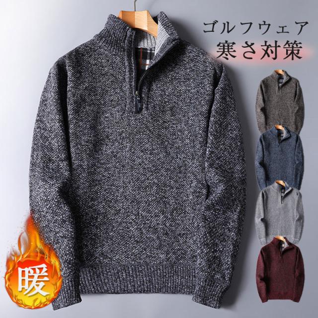 ゴルフセーター ゴルフシャツ ポロシャツ メンズ ニット Polo 秋冬 ハーフジップ 厚手 スポーツ 防寒 紳士服 秋冬 無地 スポーツ 着痩せ