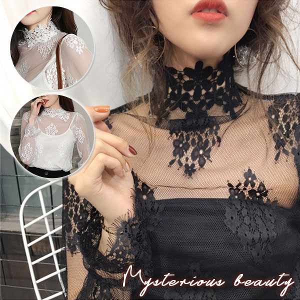 送料無料 シースルーで上品に肌魅せ レース トップス ブラウス レディース レーストップス レースブラウス シースルトップス シースルブラウス 総レース ハイネック セクシー 長袖 透け感 シアートップス ハイネック レディース トップス春 長袖 UV対策 紫外線対策 チュールトップス チュールレース 花柄 レイヤード インナー 薄手 きれいめ ラウンド シアー トップス 首元 シワ隠し レイヤード uvカット