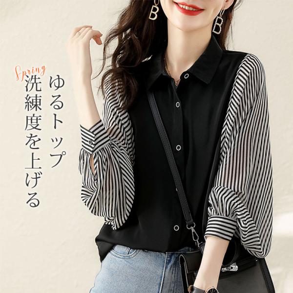 シャツ ブラウス レディース 春 長袖 通勤 韓国風 トップス フリル袖 ギャザー袖 ボタン 着痩せ オフィス きれいめ オシャレ 大人 ゆったり
