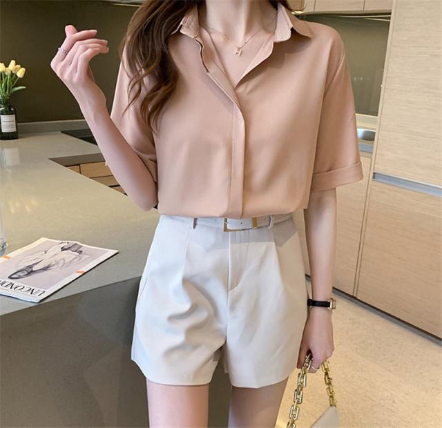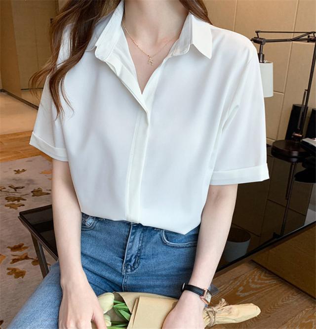 ワイシャツ 半袖 レディース ブラウス シャツ 半袖シャツ レディース トップス ビジネス OL 事務服 シフォン ブラウス おしゃれ 襟付き 無地