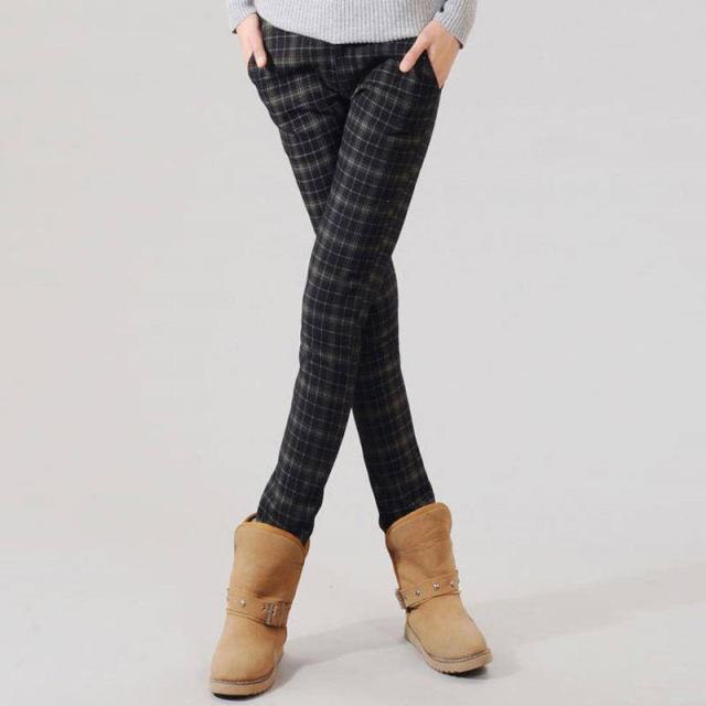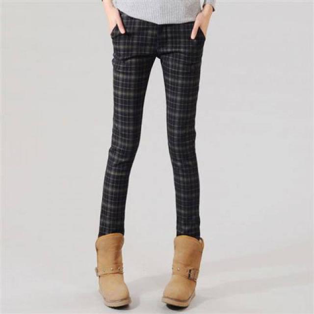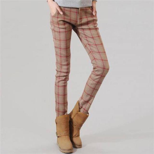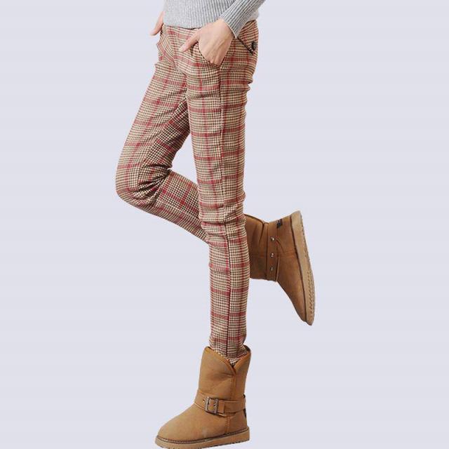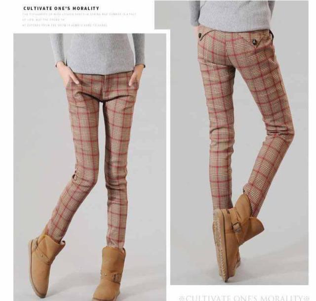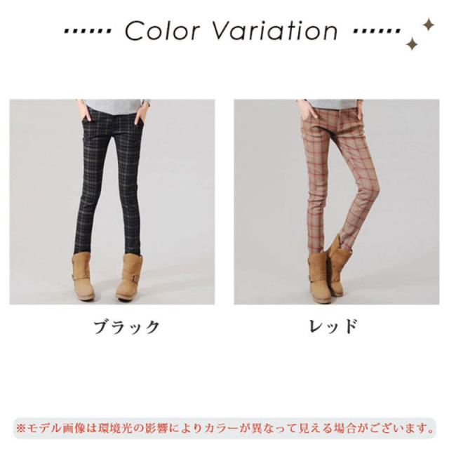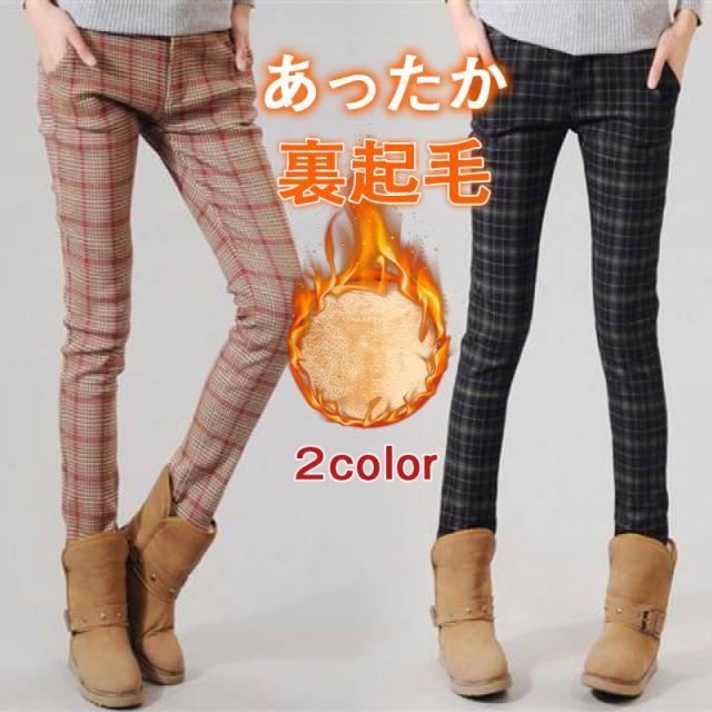 スキニーパンツ チェック柄 ロング パンツ 裏起毛 スキニー 防寒 ストレッチ 裏ボア 裏ファー ボトムス レディース 秋冬 足長効果抜群 着痩せ