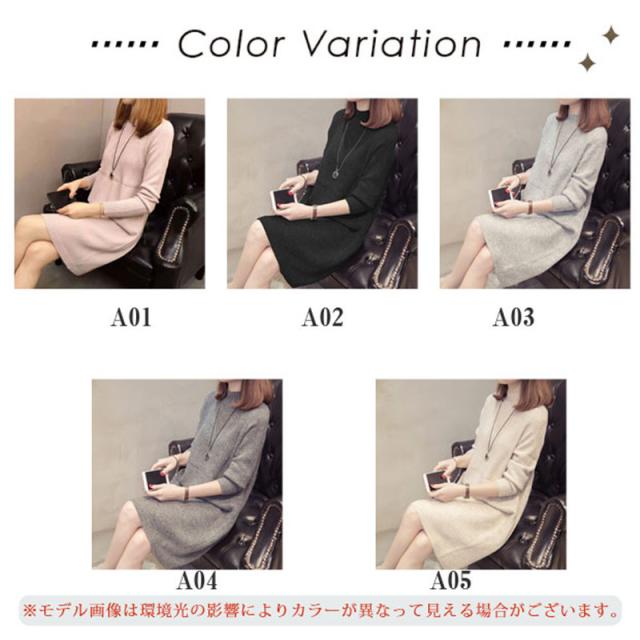ニットワンピース セーター レディース ハイネック 長袖 トップス ロングセーター ゆったり 着痩せ 可愛い 暖かい カジュアル 通勤 秋冬