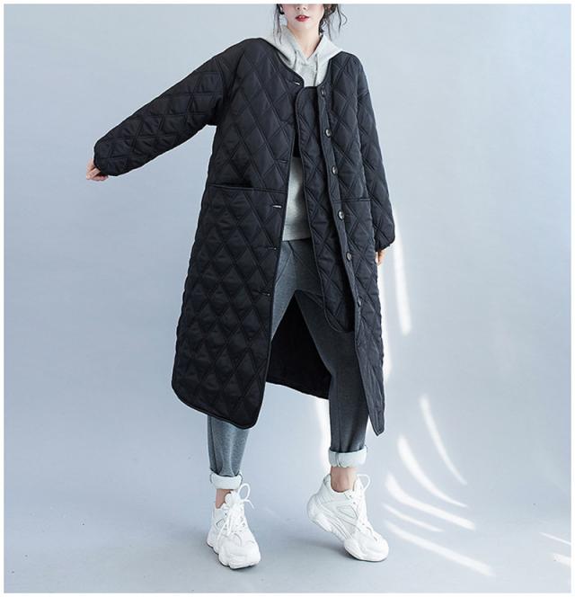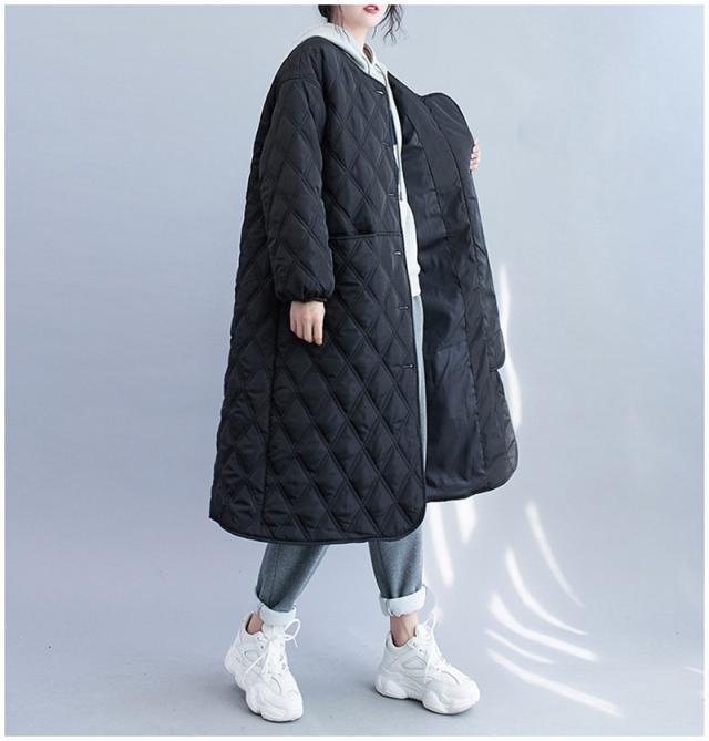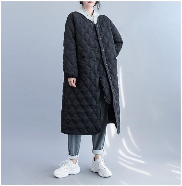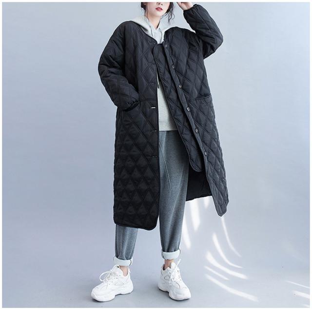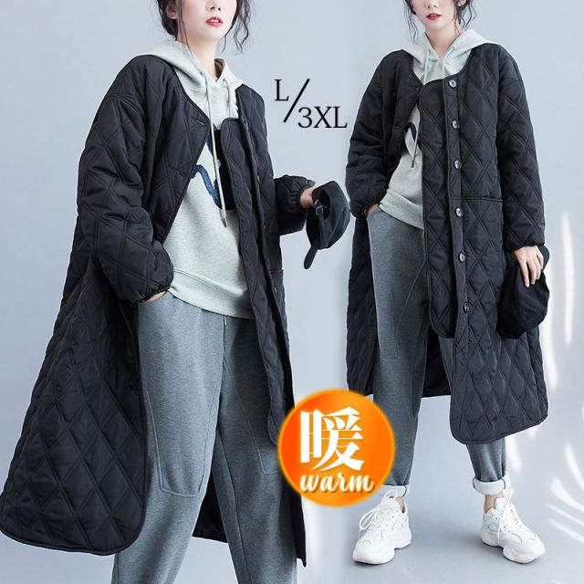 キルティングコート レディース 中綿コート 襟なし ジャンパー ロング丈 キルティング 無地 軽量 大きいサイズ 暖かい アウター あったか ゆったり