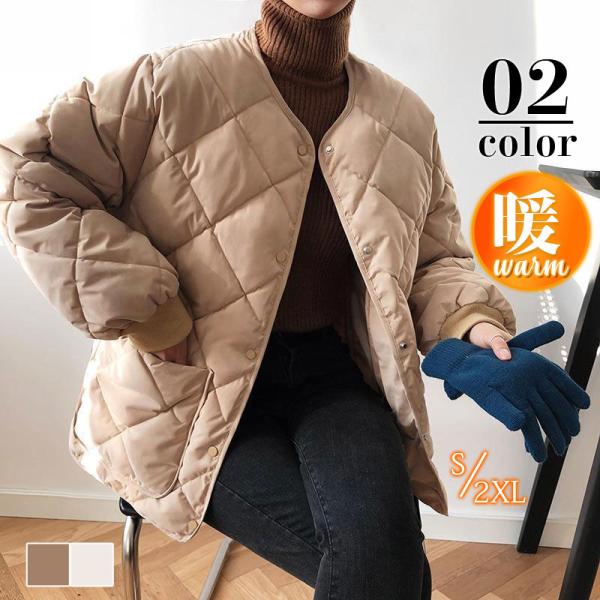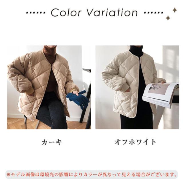 キルティングコート レディース 中綿コート 襟なし ショート丈 キルティング 無地 軽量 大きいサイズ 暖かい アウター あったか ゆったり 可愛い
