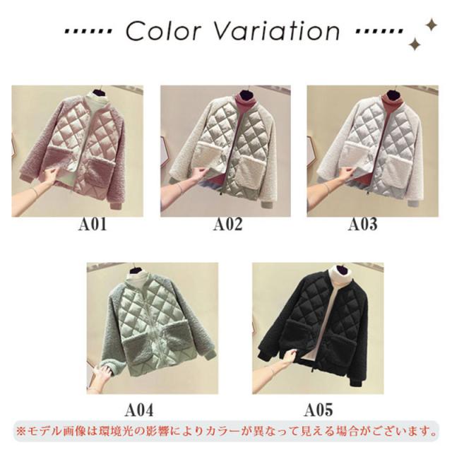 キルティングコート レディース 中綿コート ボア ジャケット キルティング ショート丈 中綿 軽量 ジャケット 防寒 アウター ポケット付き 秋冬
