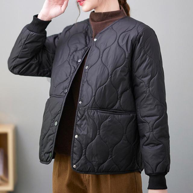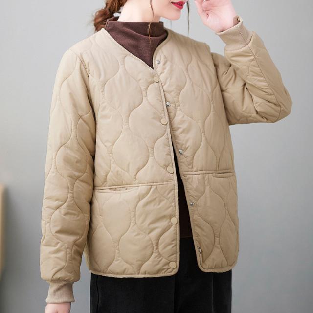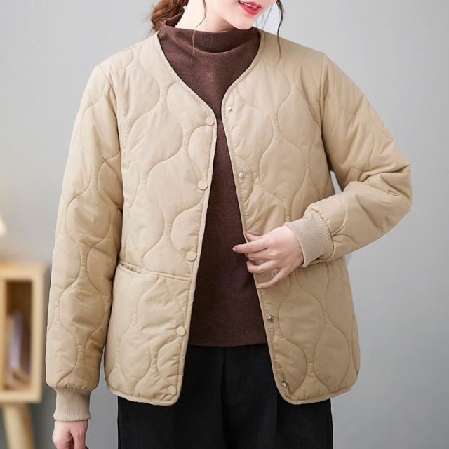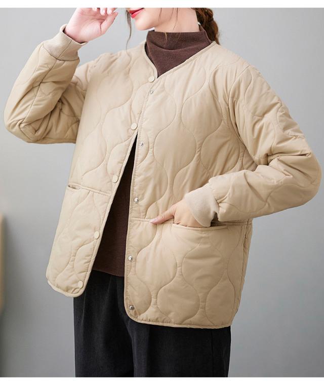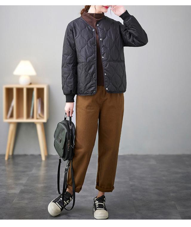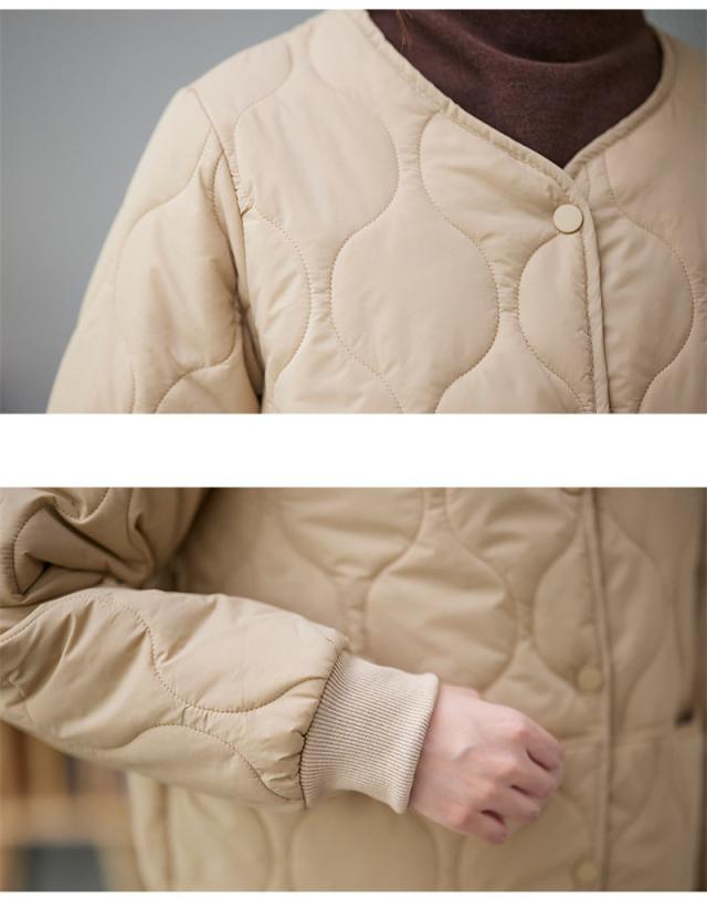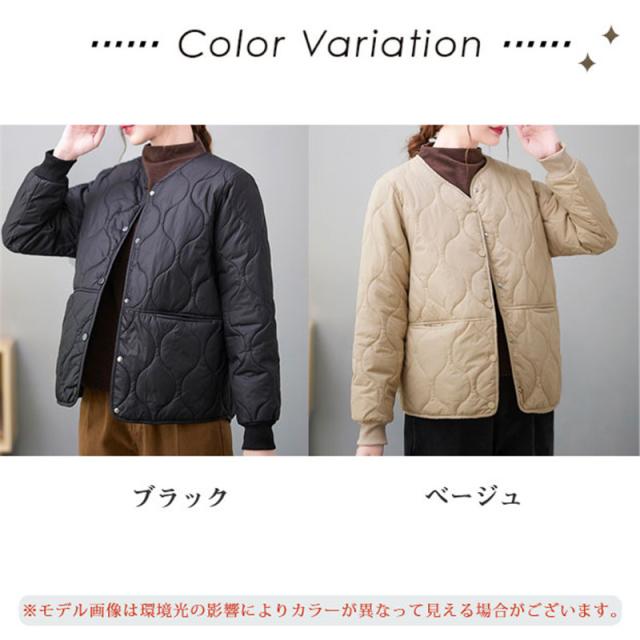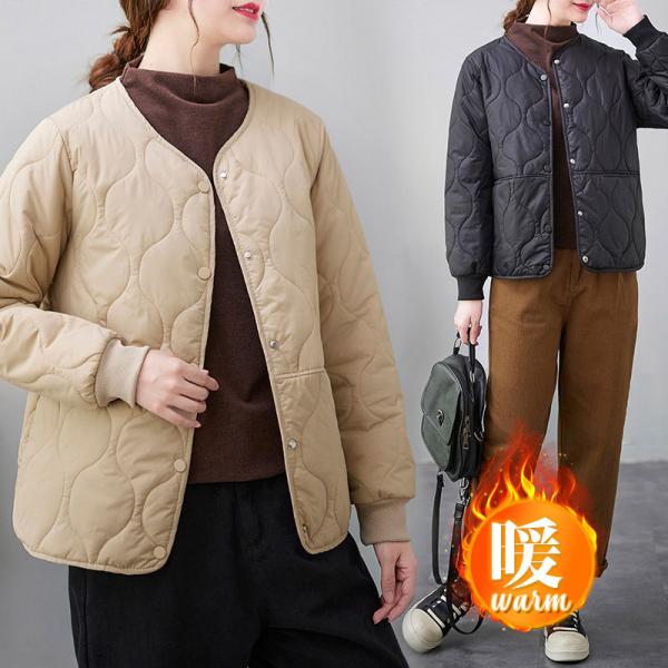 キルティングコート レディース 中綿コート 襟なし ショート丈 キルティング 無地 軽量 大きいサイズ 暖かい アウター あったか ゆったり