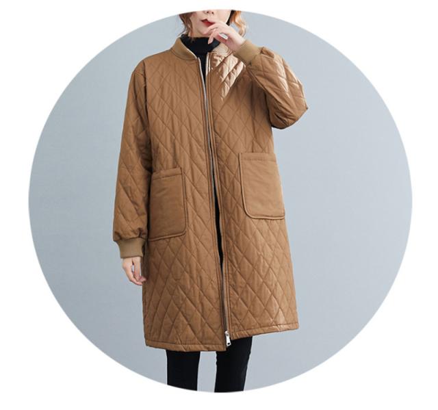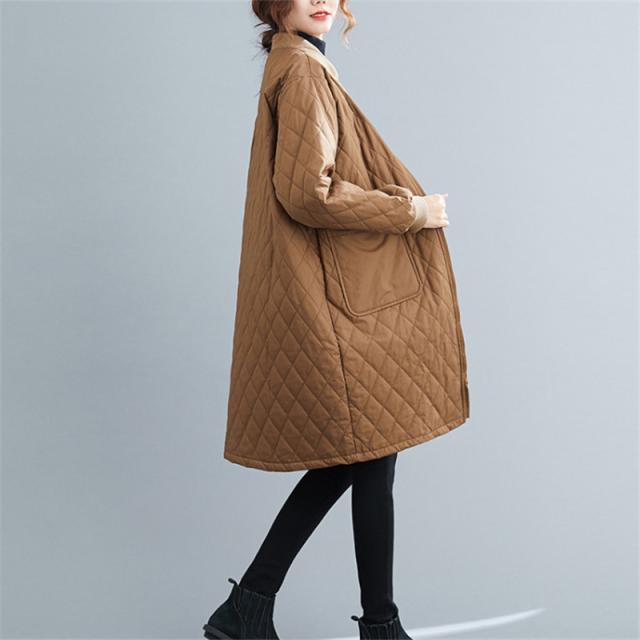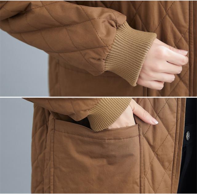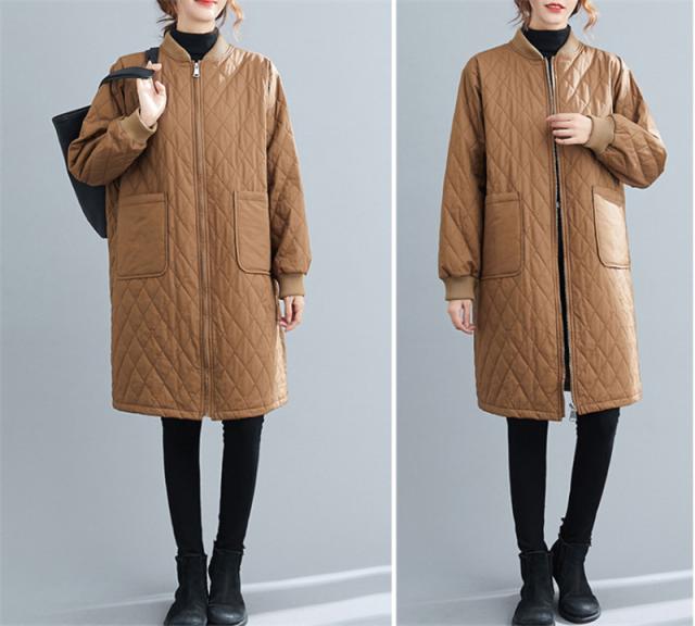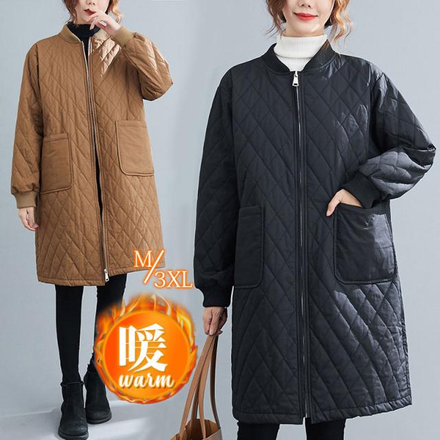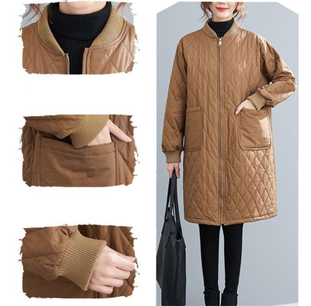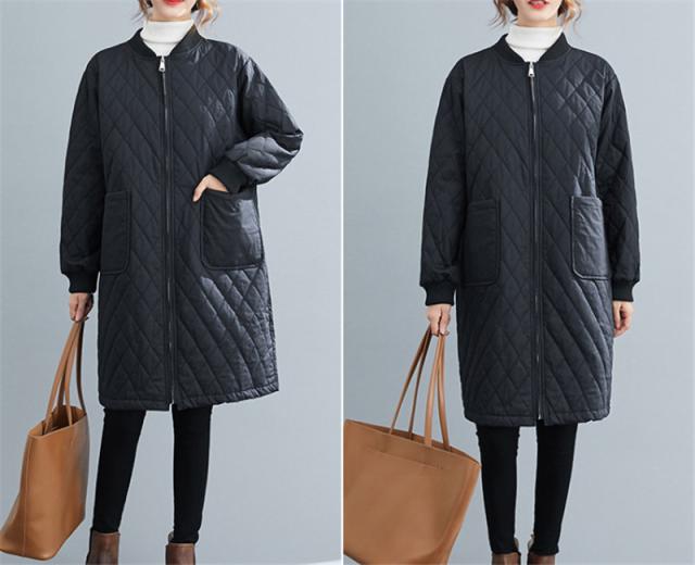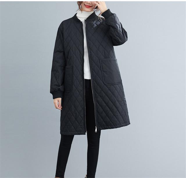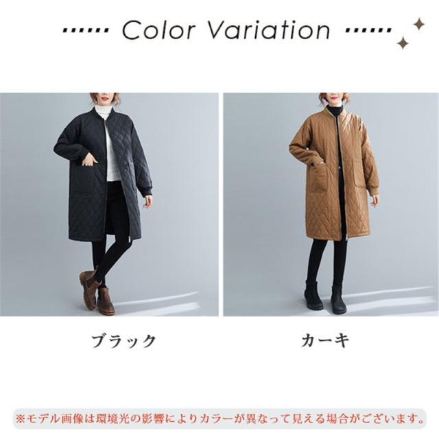 キルティングコート レディース 中綿コート 襟なし ロング丈 キルティング 無地 軽量 大きいサイズ 暖かい アウター ゆったり 秋冬