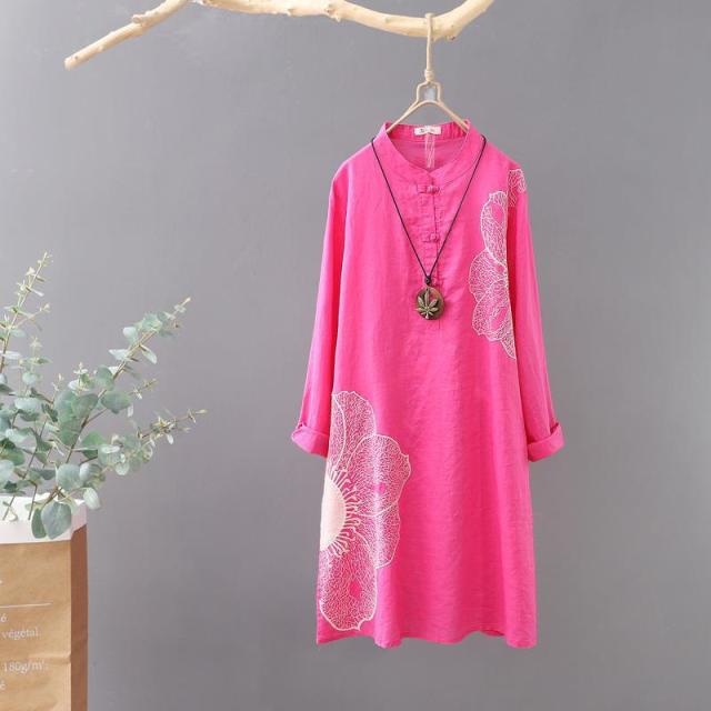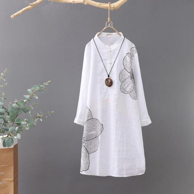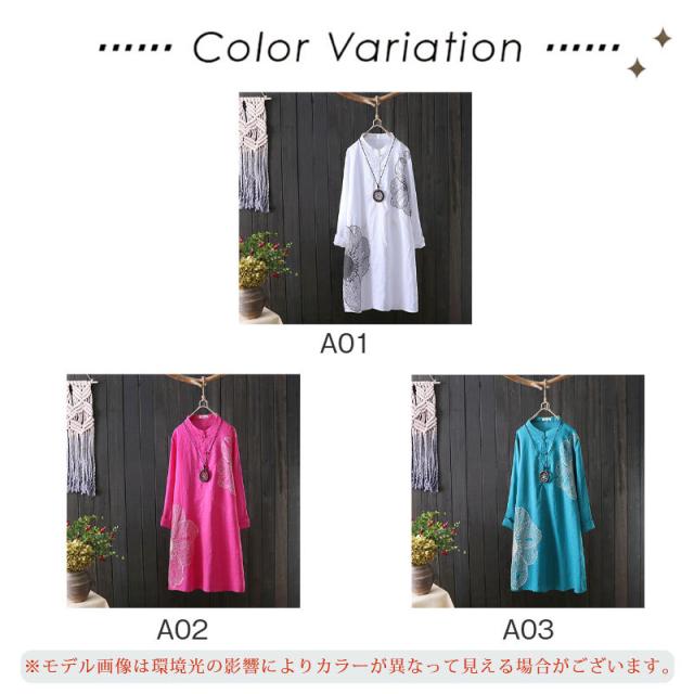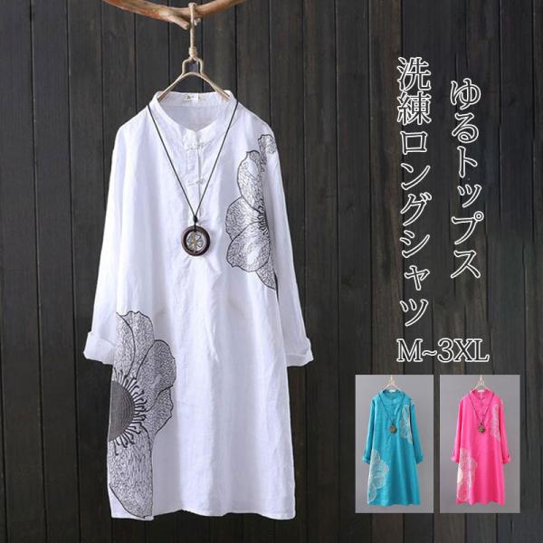 チュニック ロングシャツ 花柄 レディース ワンピース リネン風 体型カバー カットソー 着痩せ 羽織 ゆったり 無地 春秋 長袖 秋物 おしゃれ