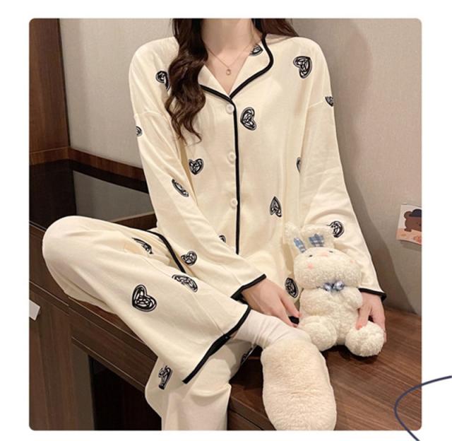 レディース ルームウェア パジャマ パーティー 春秋 秋冬 長袖セット ロングパンツ ホームウェア パジャマ 寝巻き シンプル 大人 ゆったり 上下セット 部屋着 ロングパンツ ふわふわ 綿100% 軽い 家着 Tシャツ素材 入院着 おしゃれ 無地 ナイトウエア トップス ボトムス かわいい セット 動きやすい お洒落 お揃い キャミソール 韓国風 寝間着 カジュアル 前開き 衿なし丸首 女性