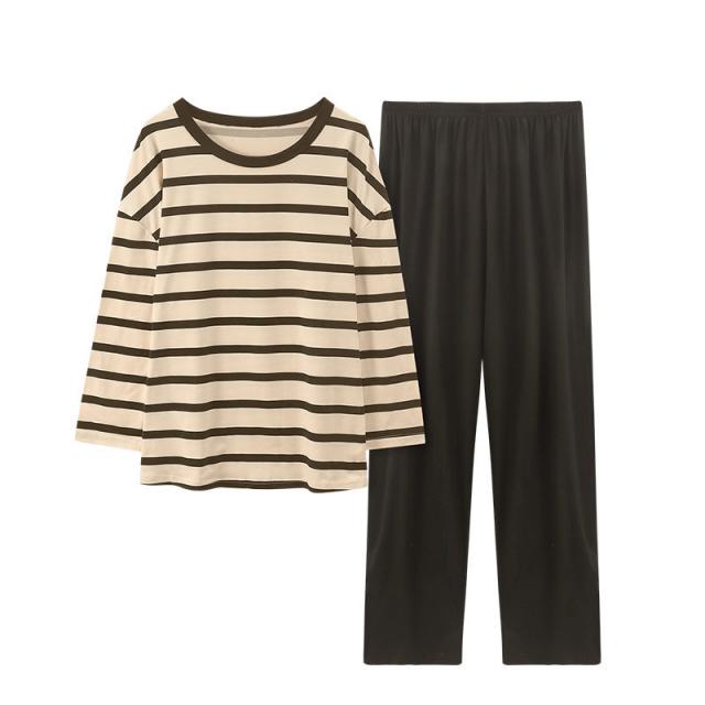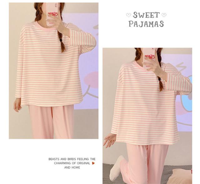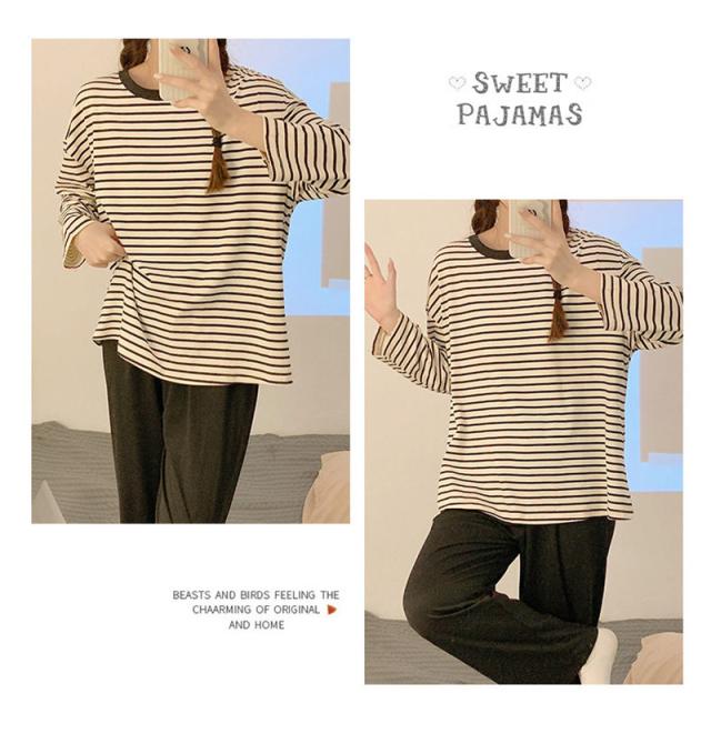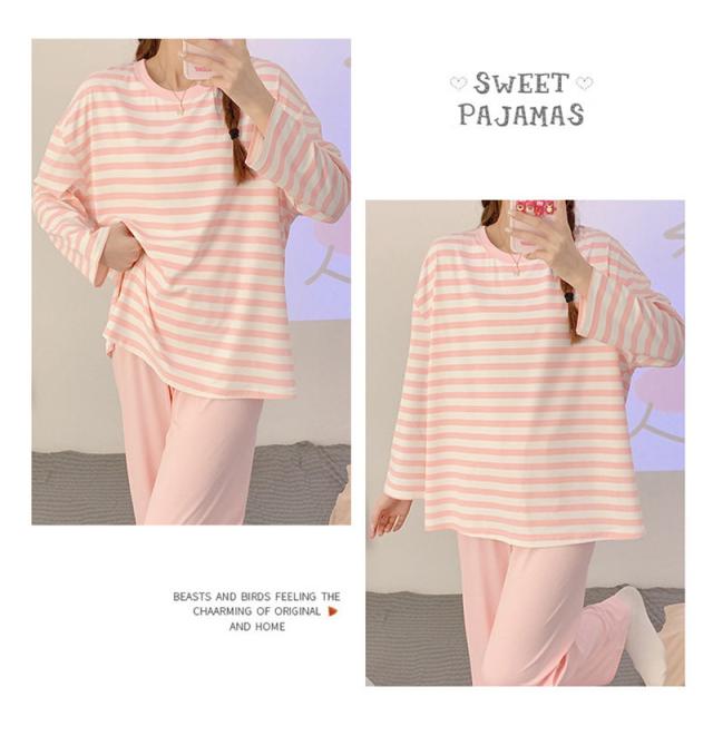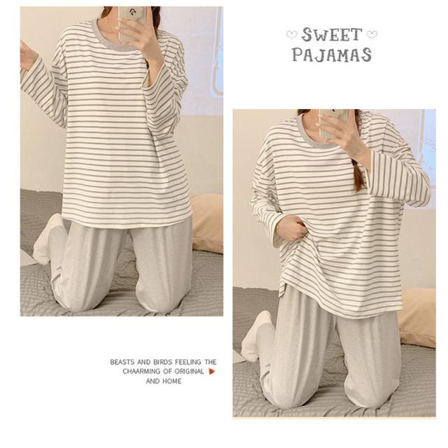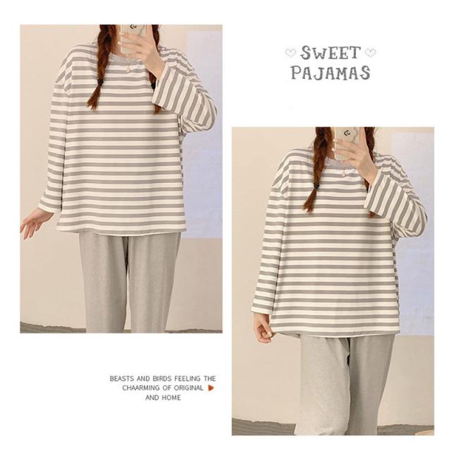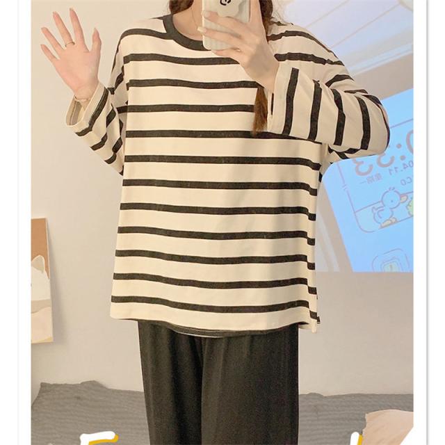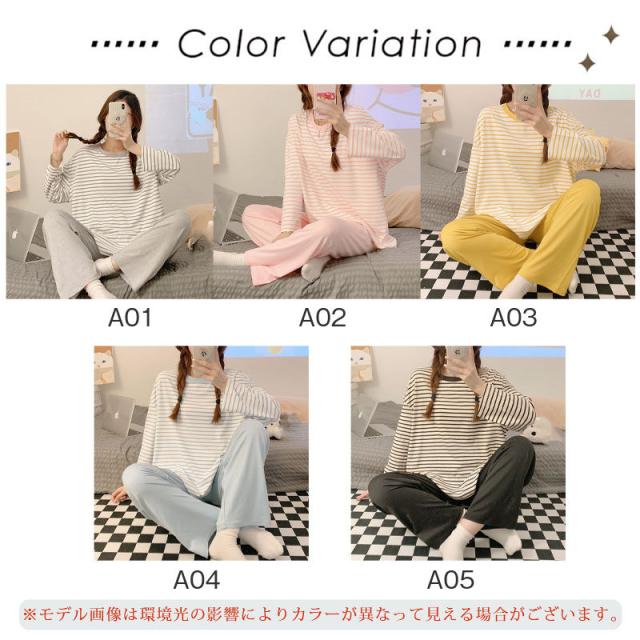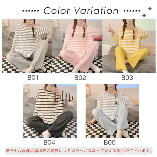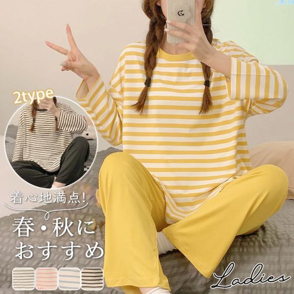 パジャマ レディース 長袖 ルームウェア ゆったり ボーダー ロングパンツ 春 夏 初秋 寝間着 ナイトウエア 着心地 部屋着 おしゃれ 入院 産後