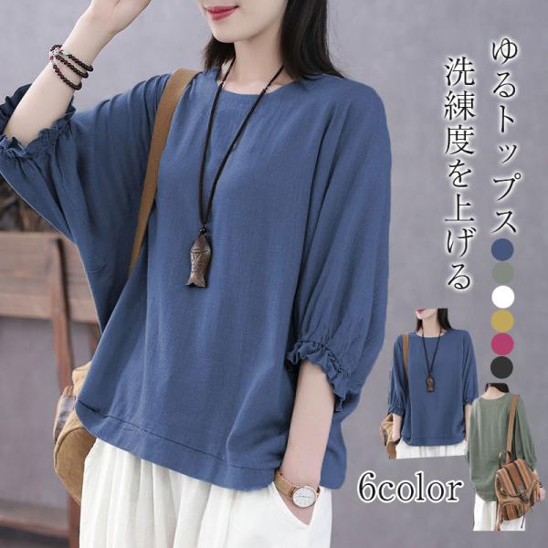 『2個以上購入で200円OFF』Tシャツ 半袖 レディース カットソー 着痩せ 体型カバー 薄手 カジュアル おしゃれ トップス 涼しい シンプル 無地 着まわし 通勤