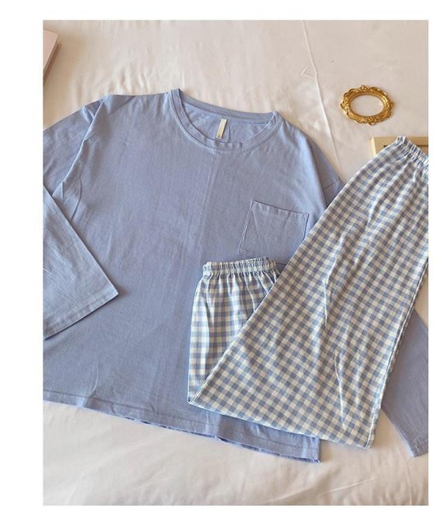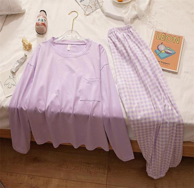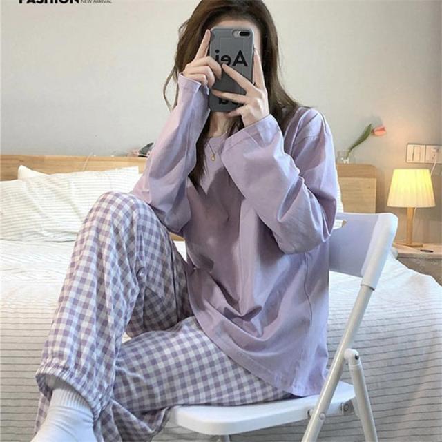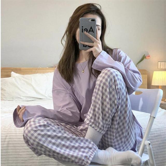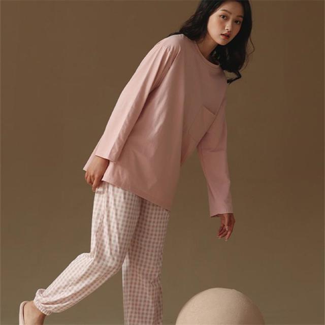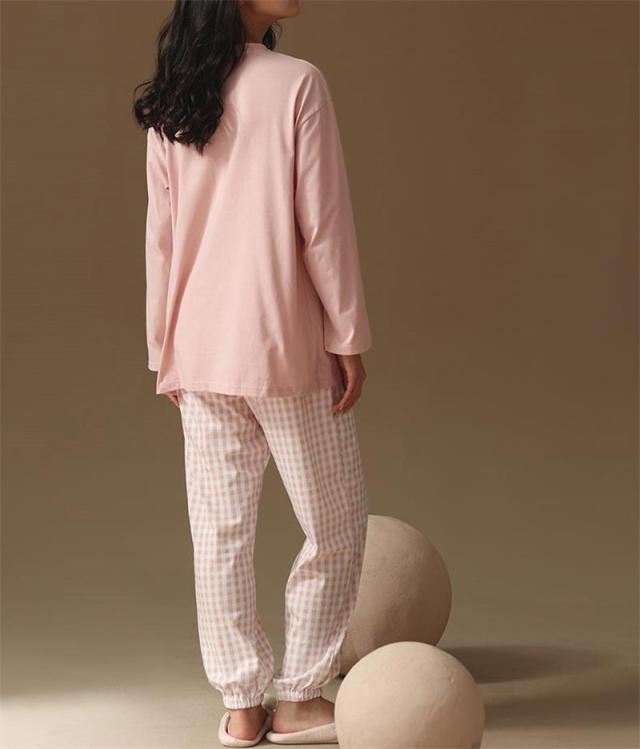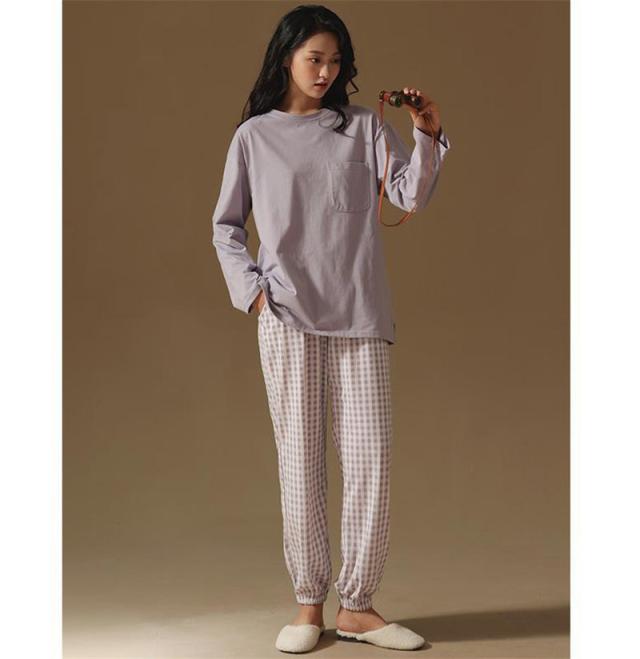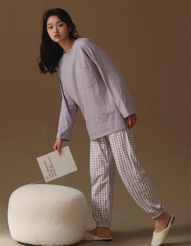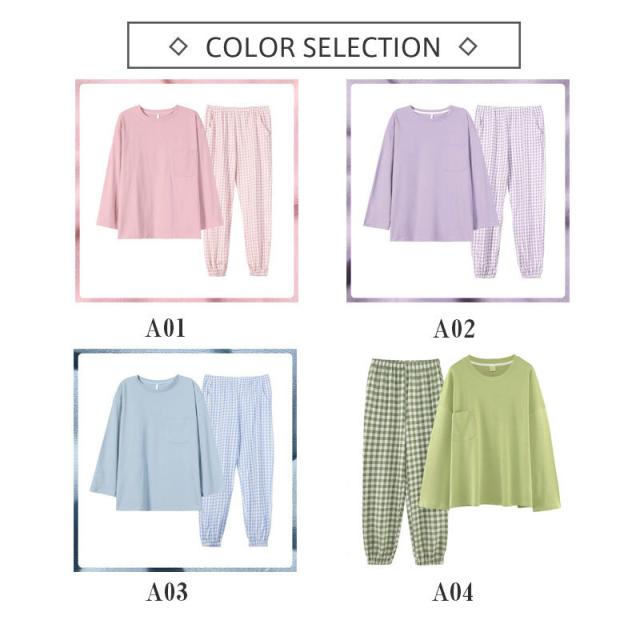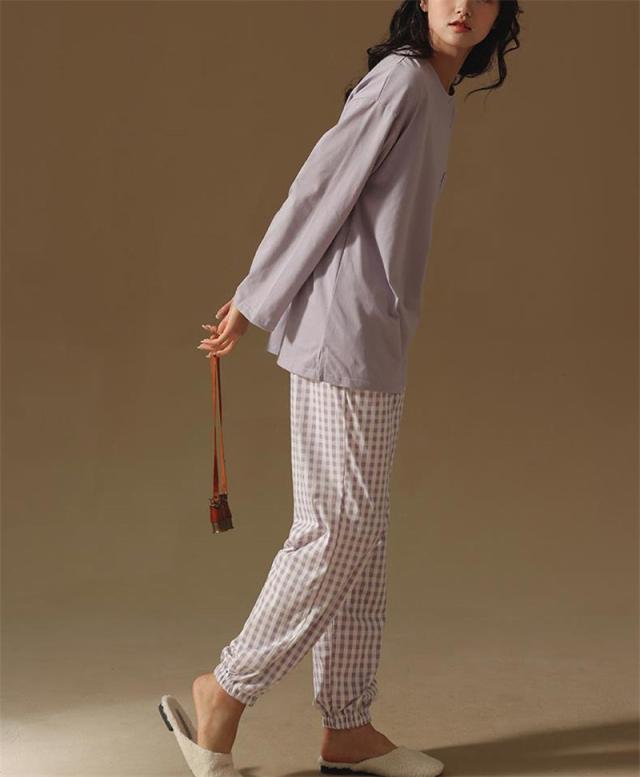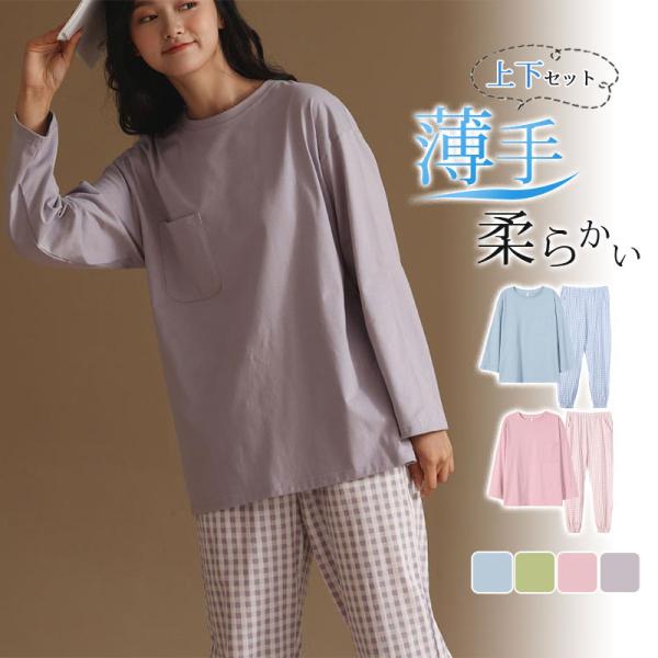 \2点ご購入で15%OFF/パジャマ 上下セット ルームウェア レディース ナイトウェア 長袖 長ズボン チェック柄 かわいい 寝間着 薄手 ゆったり 肌着