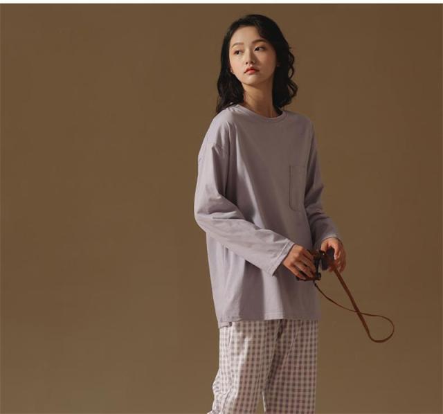 レディース ルームウェア パジャマ パーティー 春秋 秋冬 長袖セット ロングパンツ ホームウェア パジャマ 寝巻き シンプル 大人 ゆったり 上下セット 部屋着 ロングパンツ ふわふわ 綿100% 軽い 家着 Tシャツ素材 入院着 おしゃれ 無地 ナイトウエア トップス ボトムス かわいい セット 動きやすい お洒落 お揃い キャミソール 韓国風 寝間着 カジュアル 前開き 衿なし丸首 女性 2点セット 大きいサイズ 通気性 柔らかい