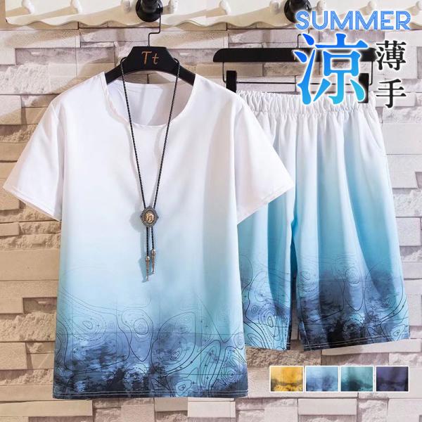 上下セット セットアップ メンズ 半袖 スウェット 薄手 ハーフパンツ サルエルパンツ ワイド ルームウェア 部屋着 カジュアル ゆったり 父の日