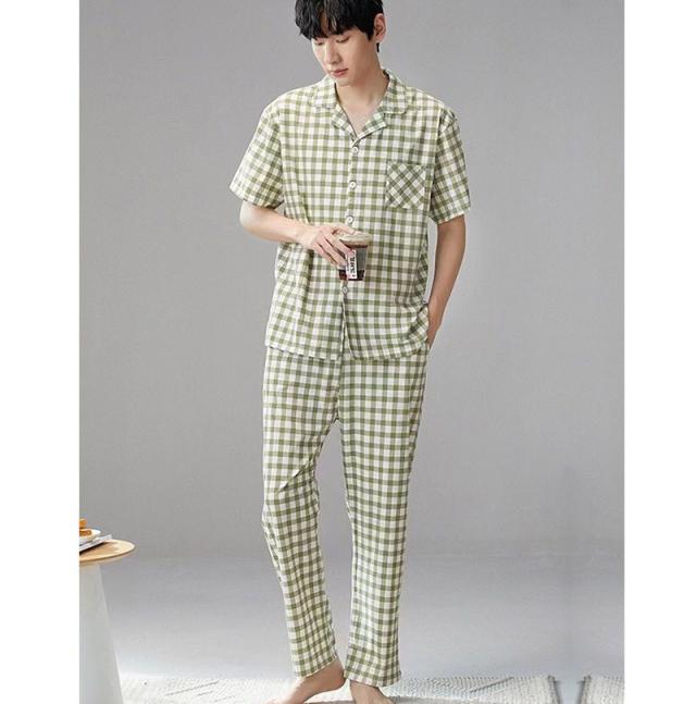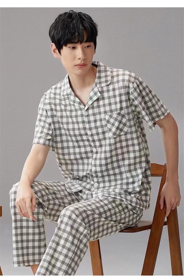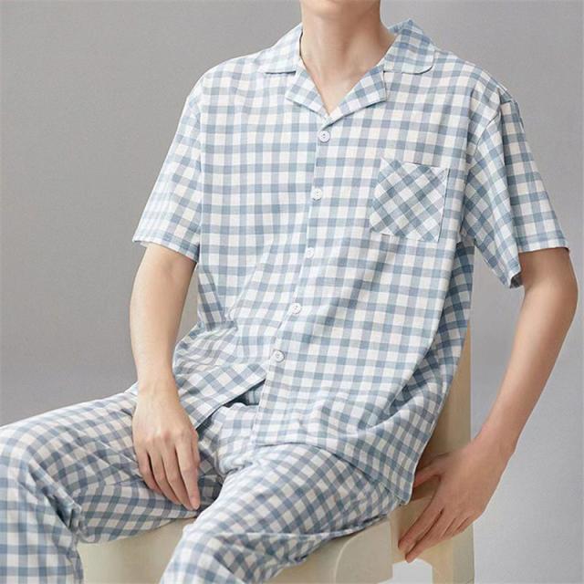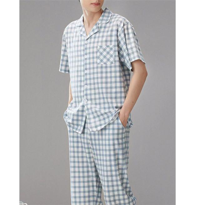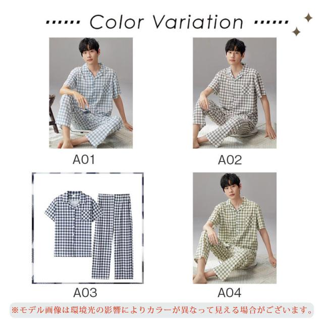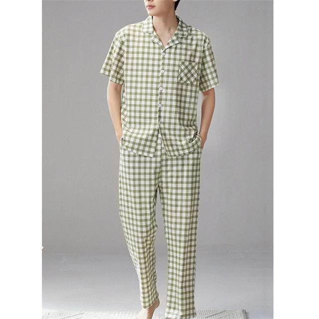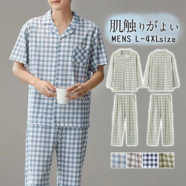 パジャマ メンズ 前開き チェック柄 ルームウェア 部屋着 男性 入院着 半袖 長ズボン 春秋夏 肌触りがよい 上下セットリラックスウェア おしゃれ
