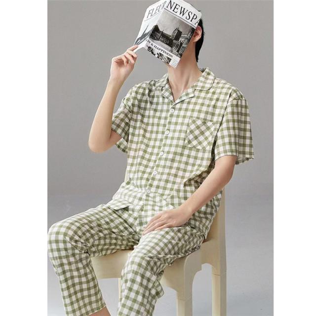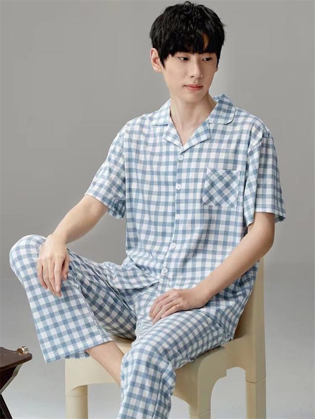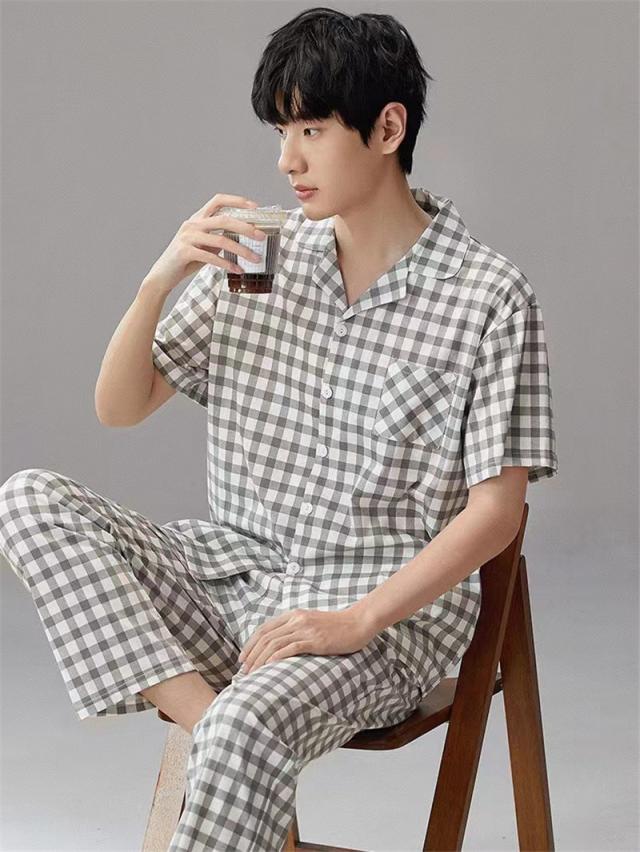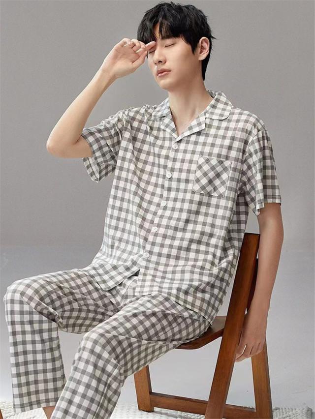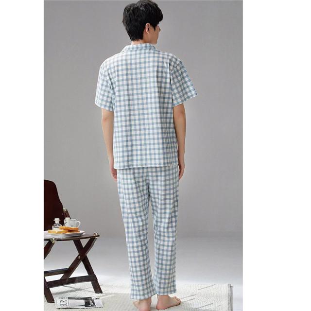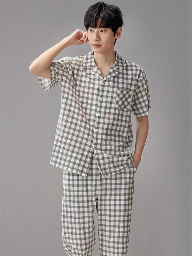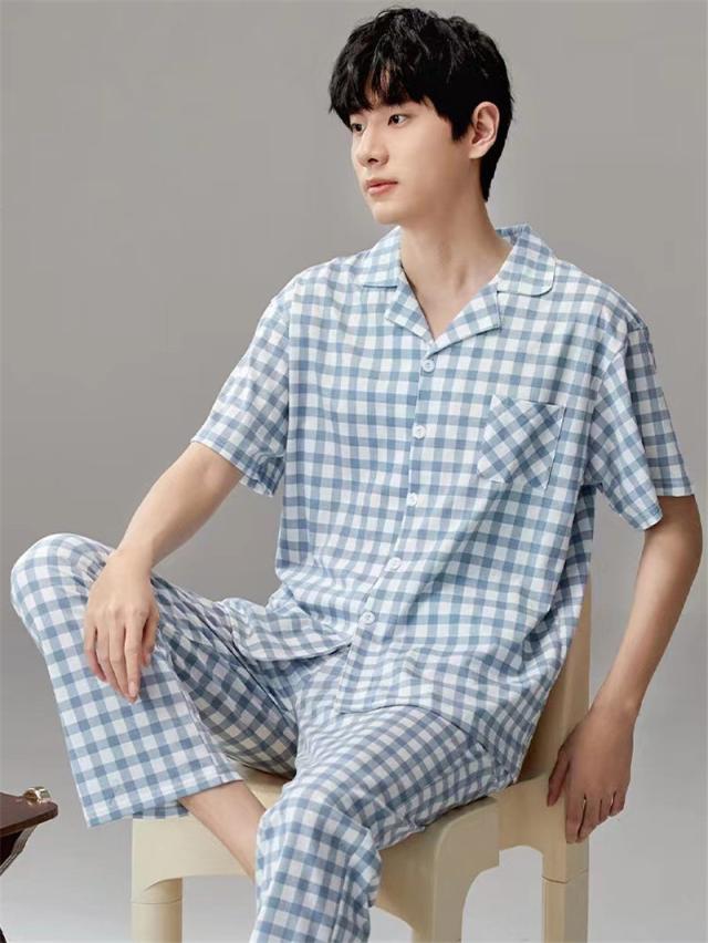 パジャマ メンズ 前開き チェック柄 ルームウェア 部屋着 男性 入院着 半袖 長ズボン 春秋夏 肌触りがよい 上下セットリラックスウェア おしゃれ