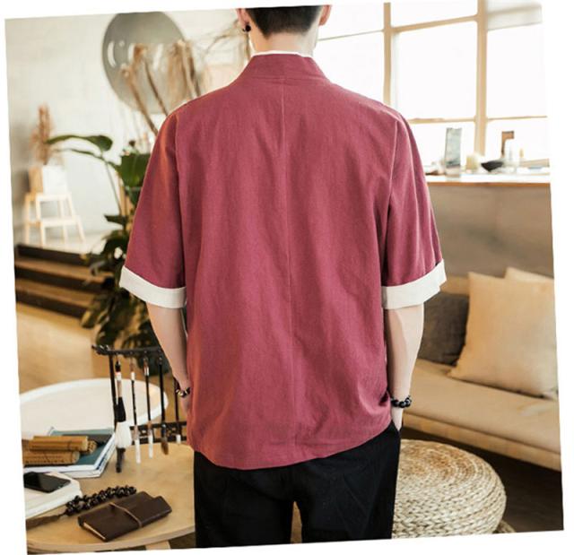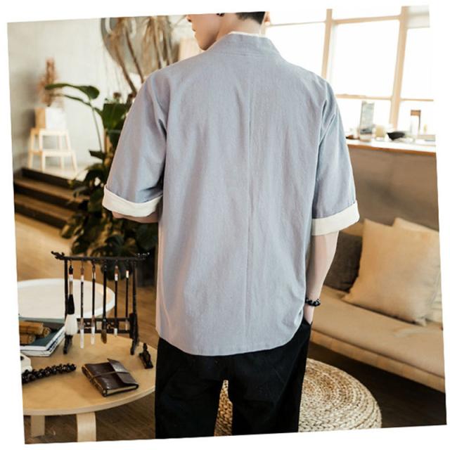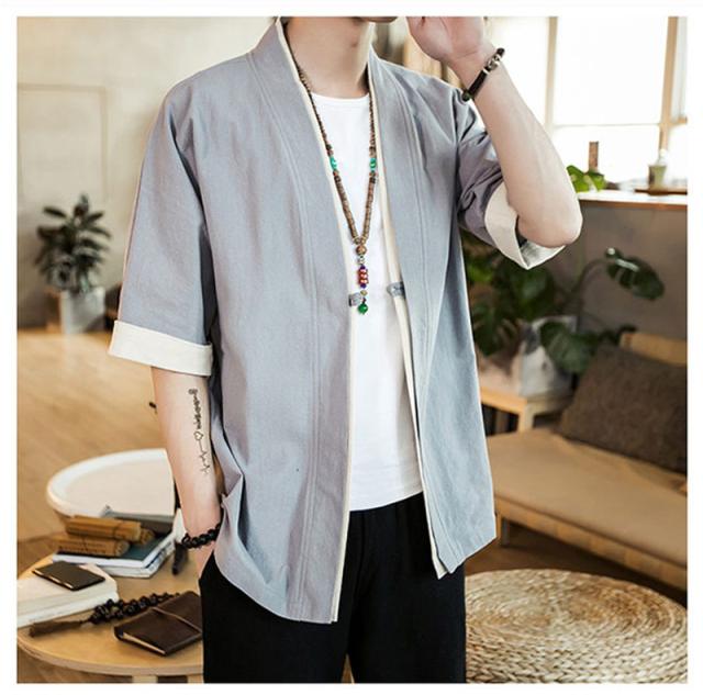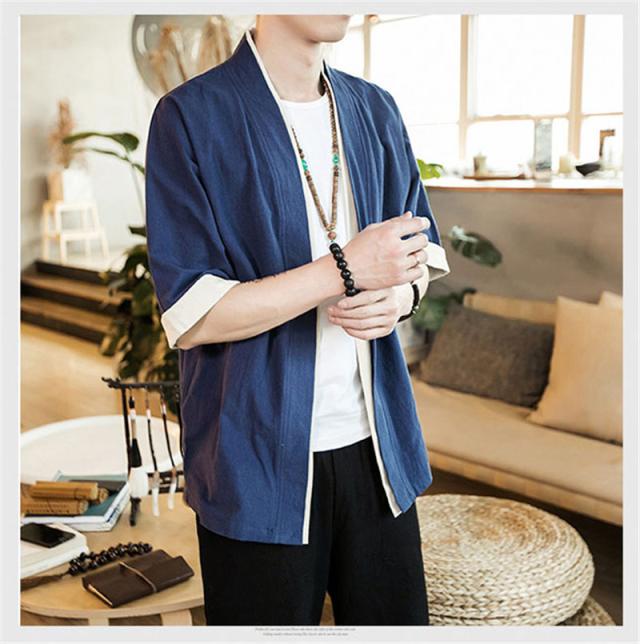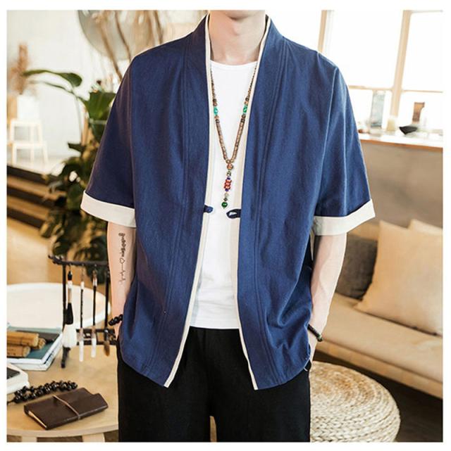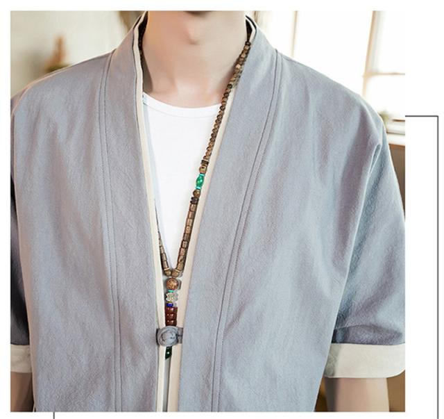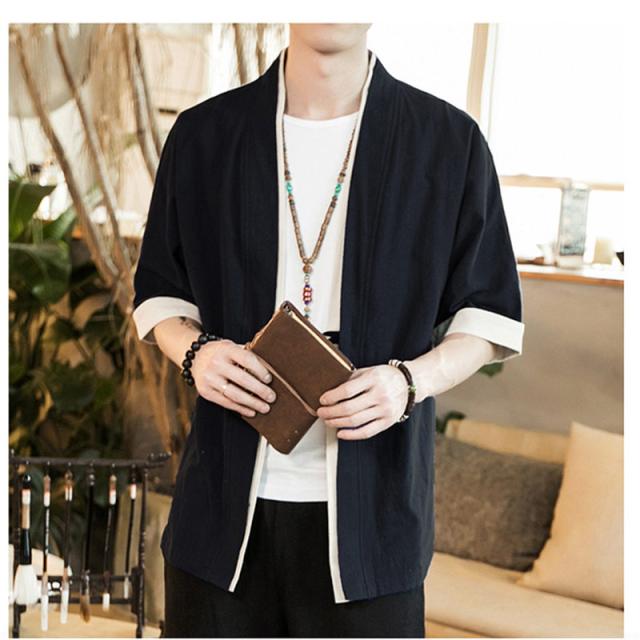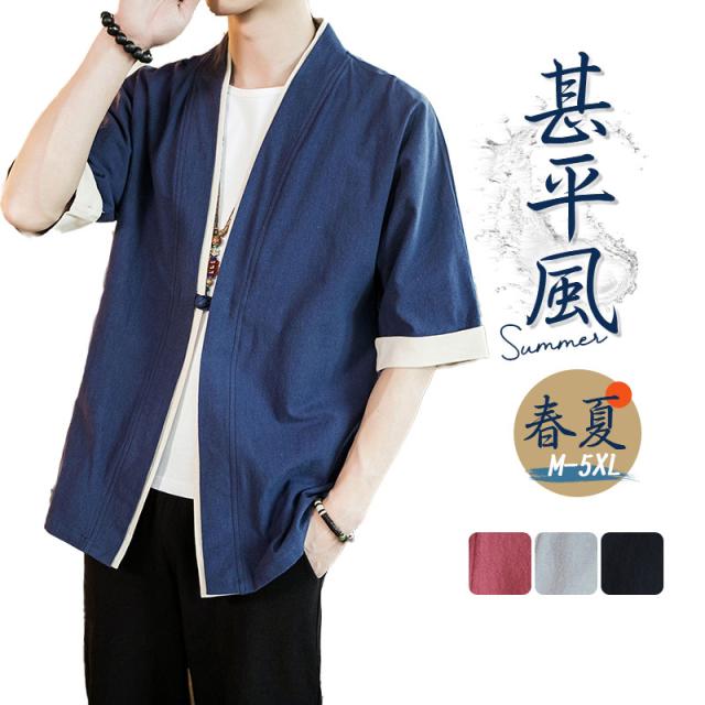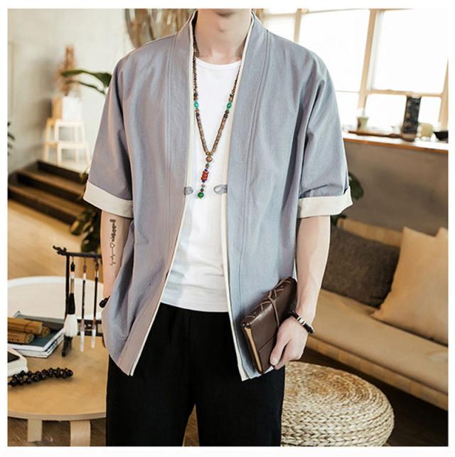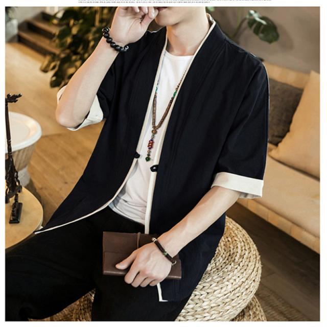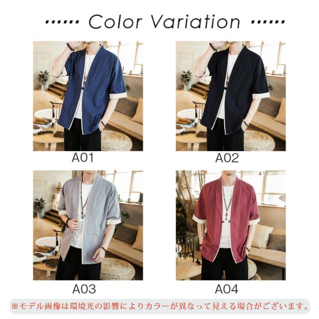 カーディガン メンズ 甚平風 薄手 五分袖 メンズ アウター 綿麻 羽織 トップス 上着 カジュアル コーデ おしゃれ 夏 お祭り 花火大会 和風