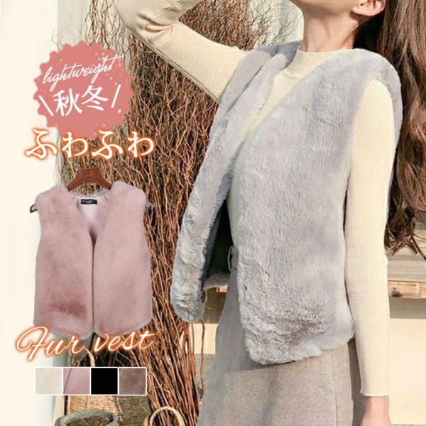 ファーベスト ベスト レディース 毛皮コート 無地 ボアベスト フェイクファー ふわふわ 暖かい 前開き 防寒 おしゃれ 秋冬 重ね着 厚手 羽織