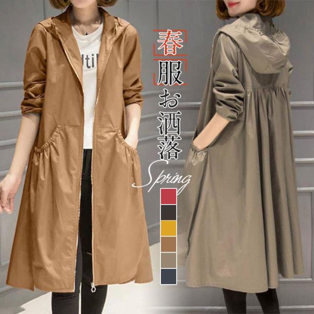 ミリタリーコート レディース スプリングコート 春物 春服 コート 無地 ロングコート 長袖 フード付き ライトアウター 30代 40代 送料無料