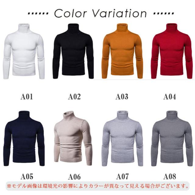 ニットセーター メンズ 無地 タートルネック シンプル カジュアル 新作 トップス カラフル 大きいサイズ 秋冬 長袖セーター おしゃれ リブニット
