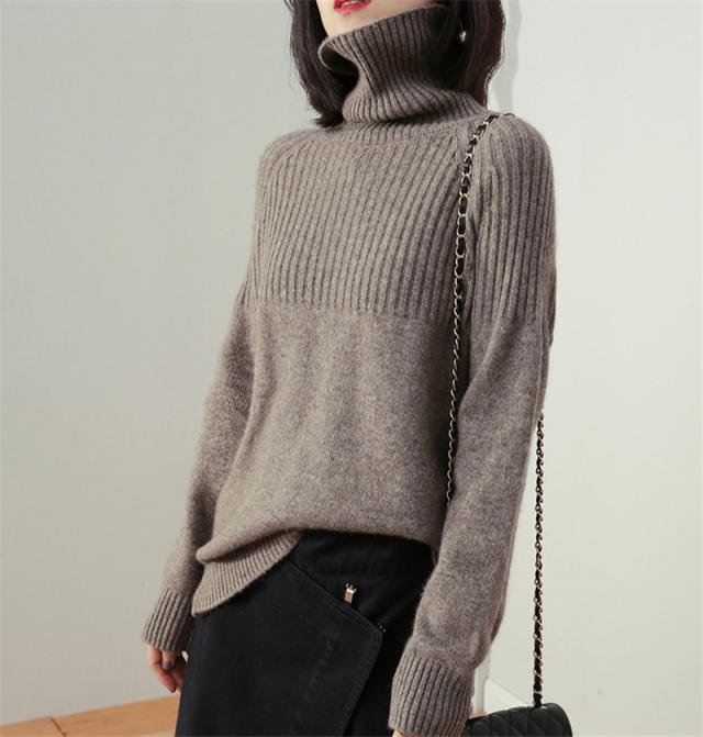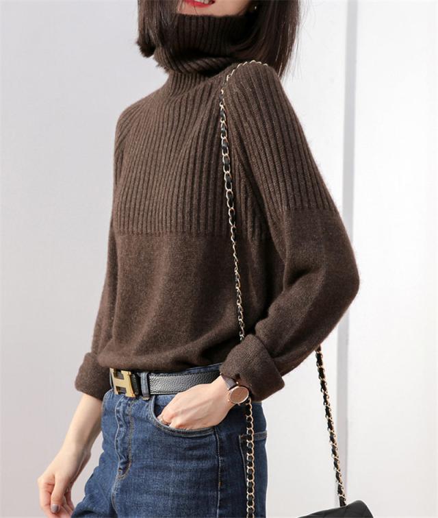 【一部即納】ニットセーター レディース トップス 長袖 ドルマンスリーブ プルオーバー 無地 セーター ニットソー ハイネック カラー 秋冬 暖かい 着痩せ