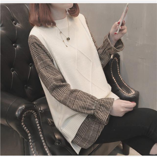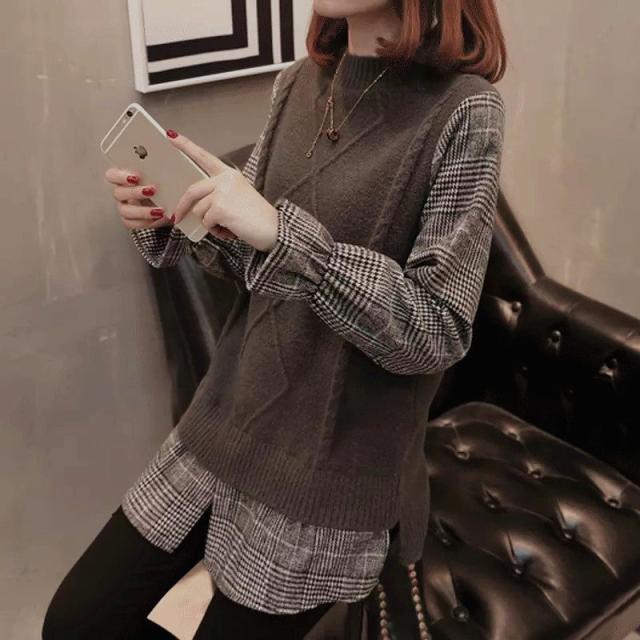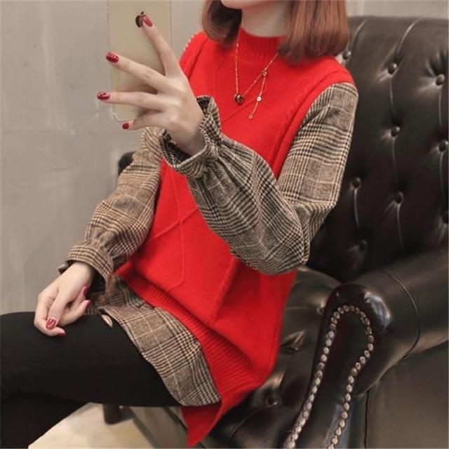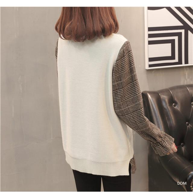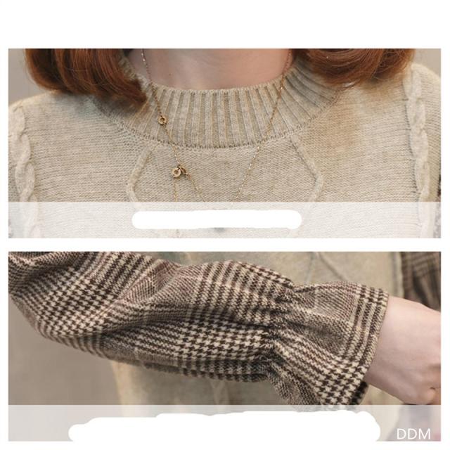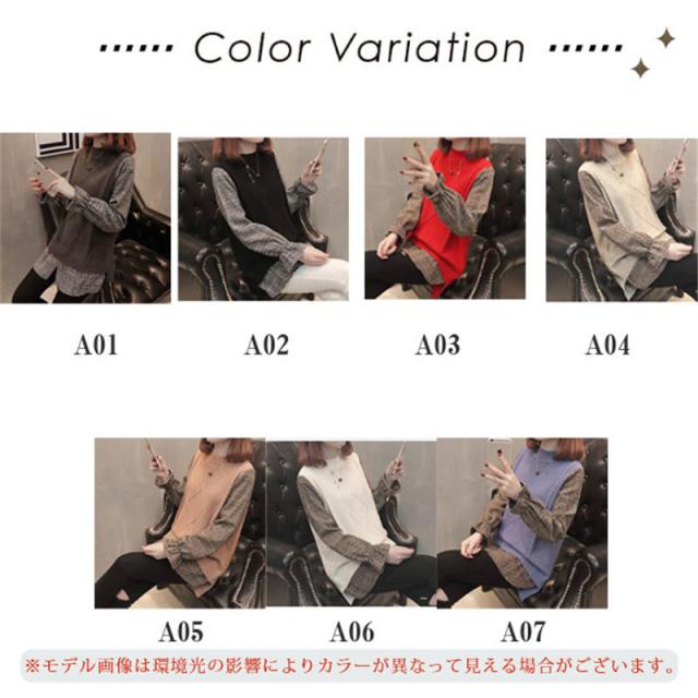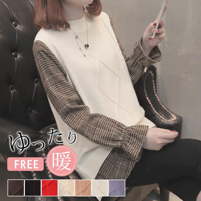 ニットセーター 重ね着風 切り替え セーター ニット チェック袖 プルオーバー 長袖 レディース トップス 秋冬物 シャツ 送料無料 暖かい 新作