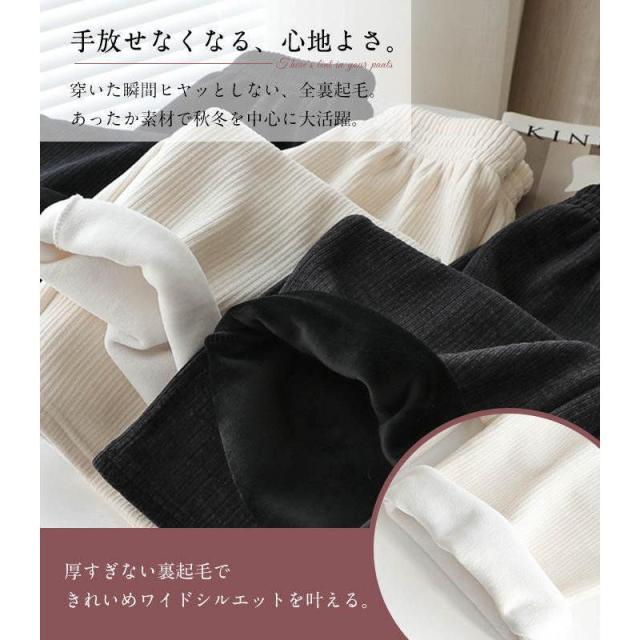 ワイドパンツ 春 裏起毛ワイドパンツ レディース マキシ丈パンツ ガウチョパンツ コーデュロイ 体型カバー 冬 秋 着痩せ 暖かい 保温 無地