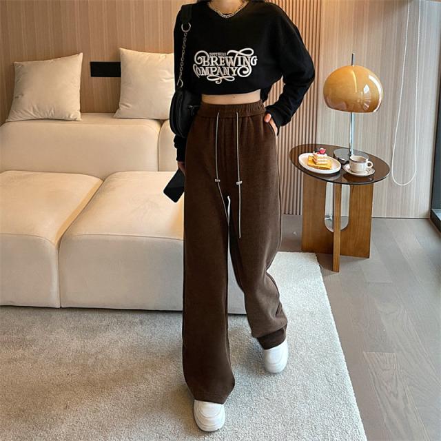履く毛布 ワイドパンツ トレンド 韓国ファッションコーデュロイ ワイドレッグパンツ レディース 無地 シンプル ゆったり 大きいサイズ カジュアル