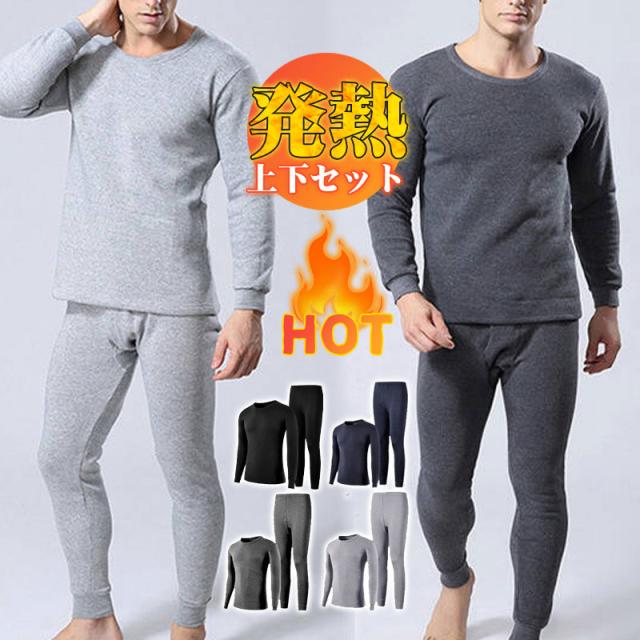 【一部当日発送】インナー メンズ インナーセット 発熱インナー 上下セット 厚手 あったか 長袖 発熱 裏起毛 無地 肌着 ロングパンツ 保温 暖かい インナー