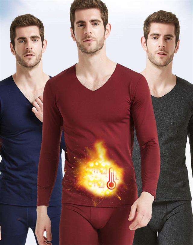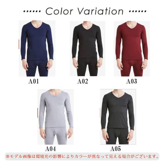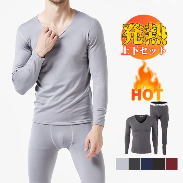 インナー メンズ インナーセット Vネック 発熱インナー 上下セット あったか 長袖 発熱 裏起毛 無地 肌着 ロングパンツ 保温 防寒インナー